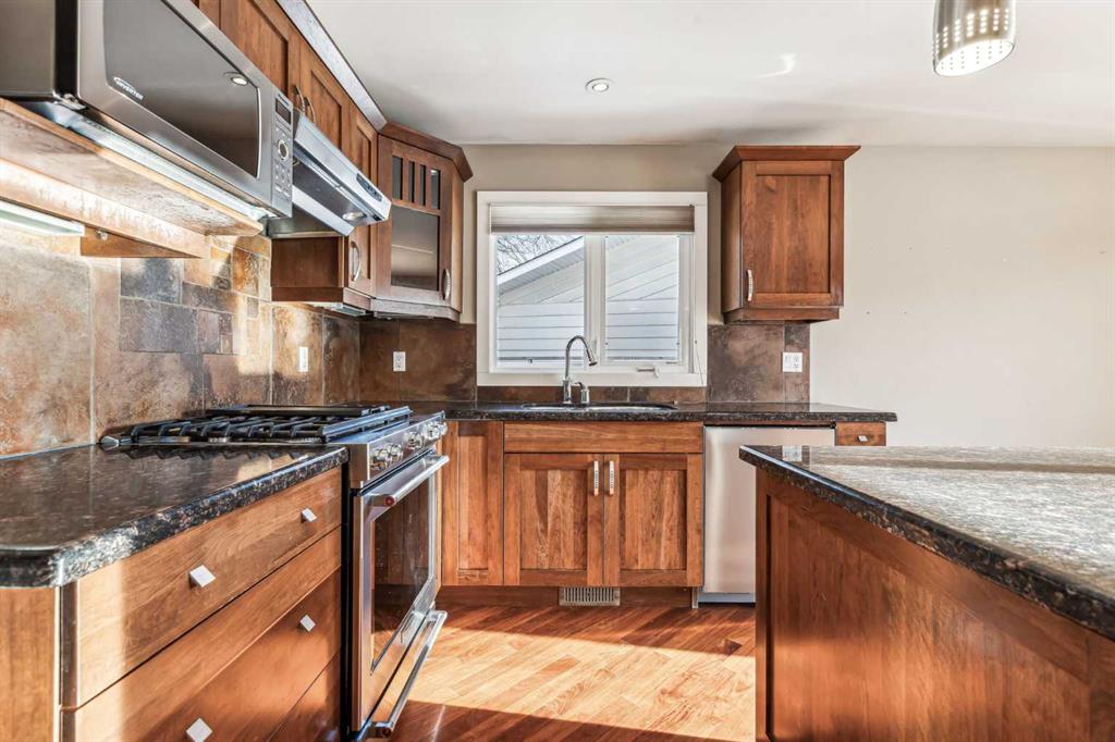 This stunning Lakeview bungalow sits on a spacious corner lot with 79 feet of frontage and 6265 total square feet. The main floor features a bright and airy living room flooded with light from the large bay window, and from the adjacent double glass patio doors leading from the kitchen and large dining room out to the wrap around deck and bbq area. This home with its gleaming hardwood floors has the perfect layout for entertaining, flowing effortlessly from the inviting living room with a large gas fireplace, into the spacious dining room. The kitchen boasts high end cabinetry, gorgeous granite counter tops, a large island, and plenty of storage. Down the hall you’ll find two of the home\'s three bedrooms. The primary is generously sized, featuring a 5 piece ensuite with a double vanity, jetted tub, and elegant finishes. The second bedroom also offers plenty of space, and a large closet. A second 4 piece bathroom completes the main level.