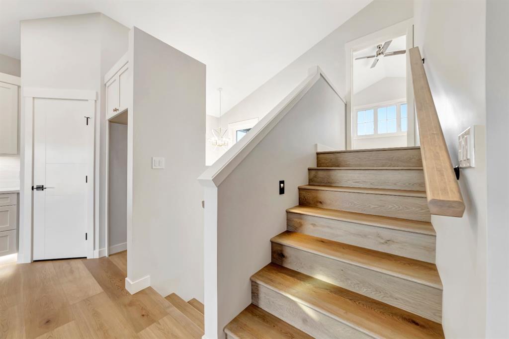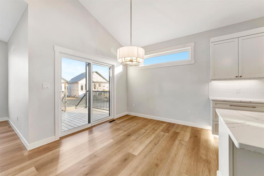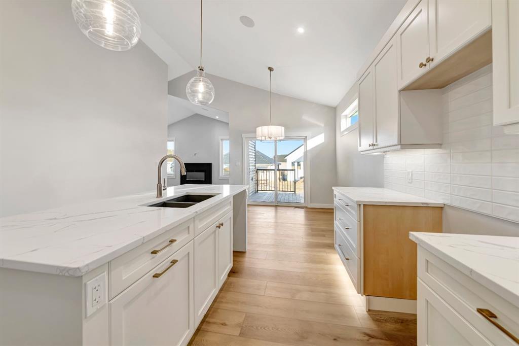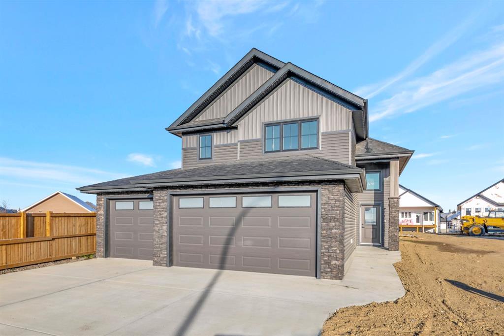 Enjoy the outdoors year-round with a covered and finished deck, while the exterior is enhanced with watt lighting for striking nighttime curb appeal and added security. The open-concept main floor boasts durable vinyl plank flooring extending through the main living areas, stairs, and upper level. The fully finished basement is cozy and inviting, with soft carpet and one of two electric fireplaces, perfect for relaxing evenings. The primary bedroom is a luxurious retreat, featuring a 5-piece ensuite with a soaker tub, custom tiled shower, and a stylish half-wall with glass to enhance the open spa-like design. Built-in speakers, upgraded cabinetry, and tile flooring in all bathrooms add to the home’s premium feel. This home will be move-in ready and is perfect for those seeking quality craftsmanship and modern comfort. Don’t miss your chance to live in one of the area’s best neighbourhoods! One of the seller\'s is a licensed Realtor in the provinces of AB & SK.