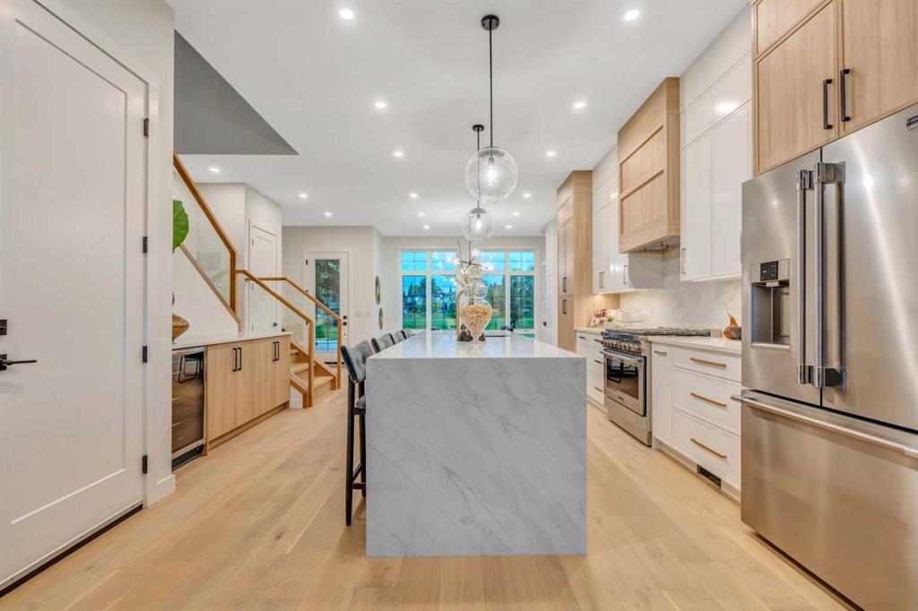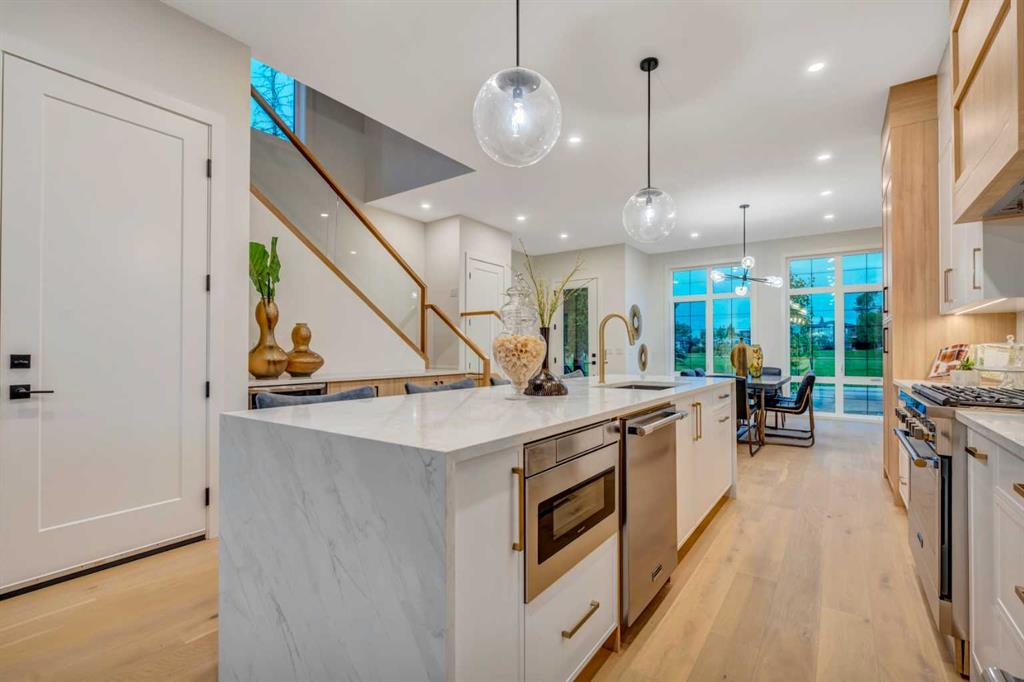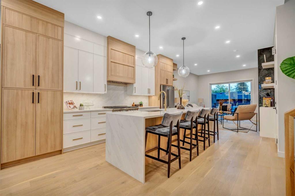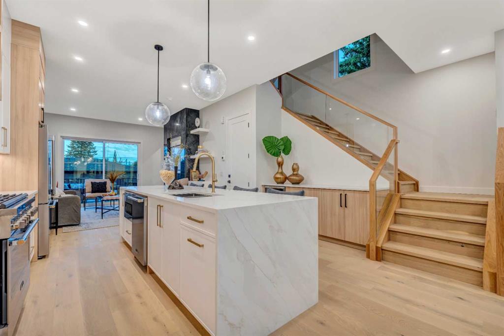 BRAND NEW MODERN MASTERPIECE | PARK-FRONT LIVING | LEGAL LOWER SUITE | DESIGNER FINISHES THROUGHOUT | EXTRA DEEP 125’ LOT | VAULTED CEILINGS | PRIME KILLARNEY LOCATION! Experience the perfect blend of luxury & functionality in this stunning new build directly across from a lush green space. Every inch has been carefully curated with premium materials, sleek lines & an emphasis on light-filled, open-concept living. Oversized windows in the front dining area showcase uninterrupted park views, creating an inspiring backdrop for meals & gatherings. At the centre of the home, the gourmet kitchen pairs custom two-tone cabinetry with integrated appliances, polished quartz surfaces + a striking waterfall island, ideal for both casual dining & chef-level creations. The airy living room is anchored by a dramatic full-height fireplace surround & glass patio doors that open to a spacious rear deck, making indoor-outdoor entertaining effortless. A built-in mudroom with smart storage & a chic powder room add everyday practicality. Upstairs, the primary retreat feels like a private sanctuary with soaring ceilings, a bold feature wall, park views, custom walk-in closet + a spa-like ensuite offering a freestanding tub, dual sinks and an oversized steam shower. 2 more bedrooms, a beautifully appointed main bath and a full laundry room complete the upper level. The bright and spacious LEGAL SUITE offers its own entrance, contemporary kitchen with full-size stainless steel appliances, an open living area, large bedroom, stylish 3-piece bath and private laundry, perfect for multi-generational living or rental income. Outside, enjoy a large backyard designed for relaxation, featuring an expansive deck, landscaped lawn and easy access to the oversized finished double garage. With schools, parks, the Aquatic Centre, shopping and 17th Avenue’s restaurants just a short stroll away, plus quick connections to downtown, this home delivers elevated inner-city living in one of Calgary’s most desirable neighbourhoods!