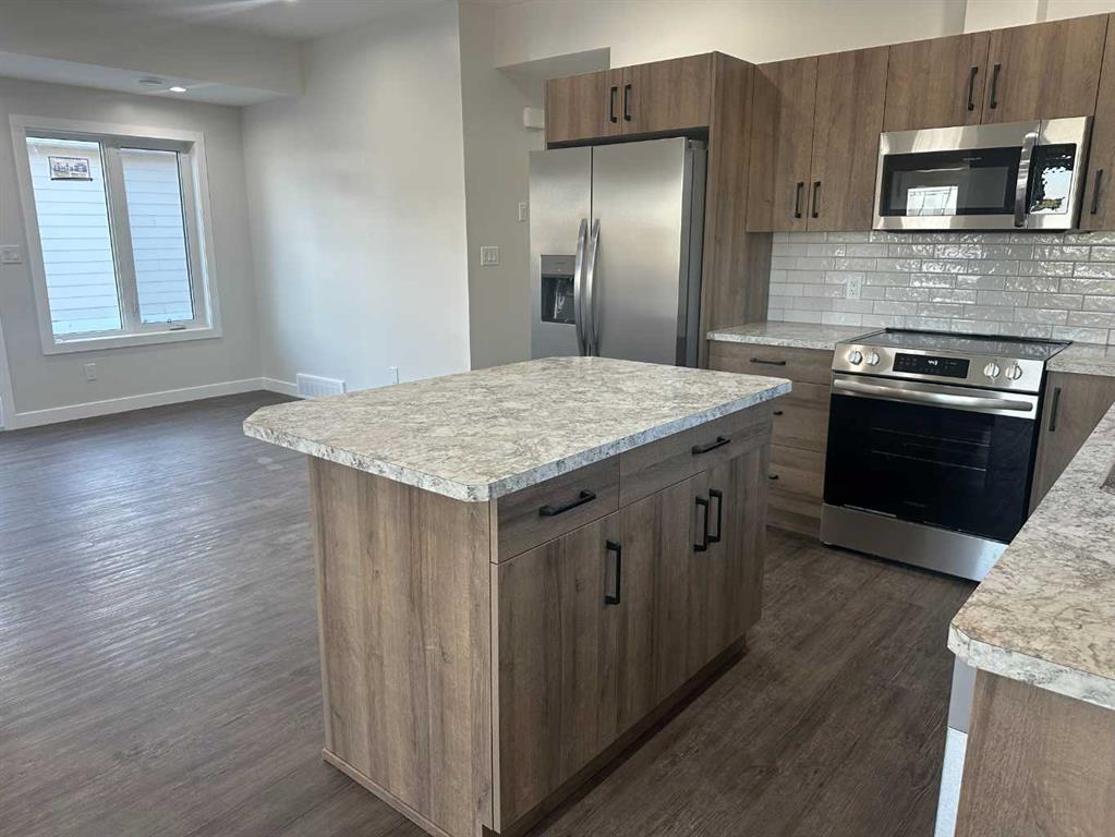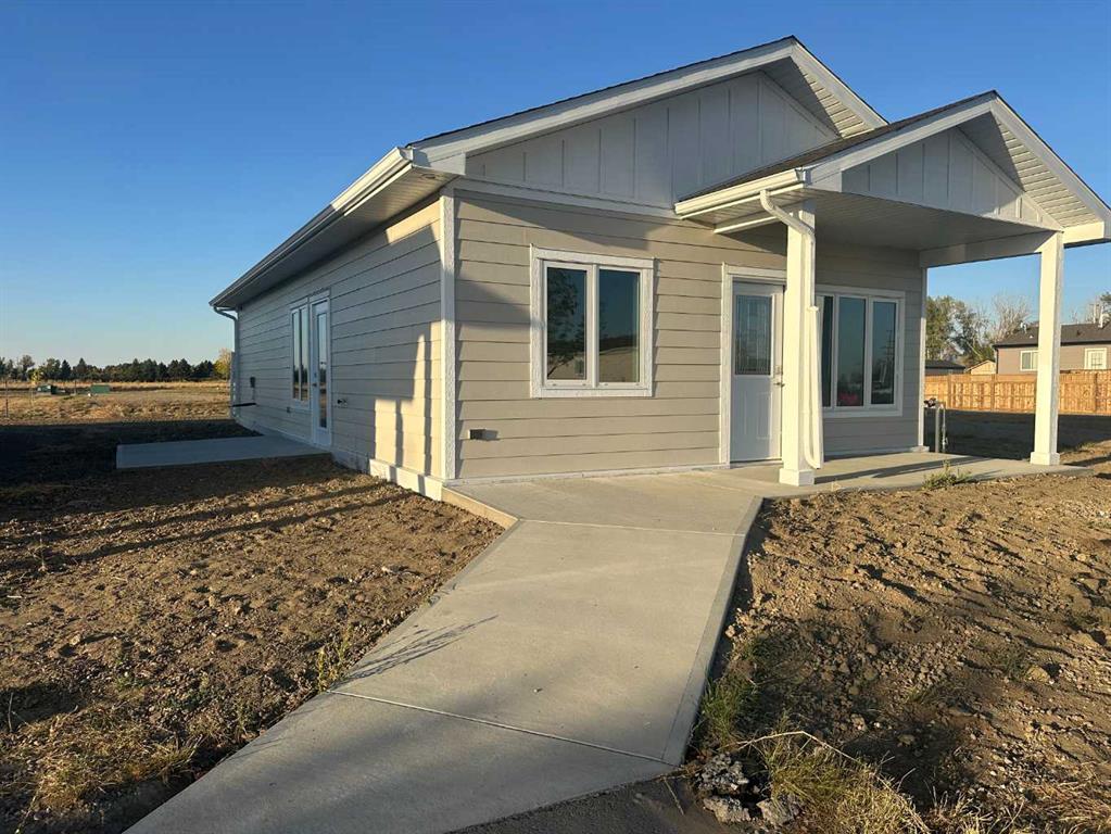 One level living! Welcome to this 3 bedroom affordable home in the Meadows, Taber\'s newest subdivision! This brand new home is fully completed and ready for it\'s first owner. Step into the expansive open concept layout of the living room/kitchen area with high ceilings for that bright, airy atmosphere. From there you\'ll find a bedroom near the front of the home, a dining area to gather for meals, down the hall a laundry/mechanical. The back of the home is finished with a 4pc bathroom and 2 more bedrooms. Just need to move in!