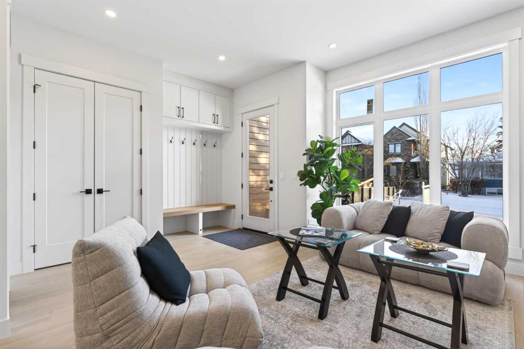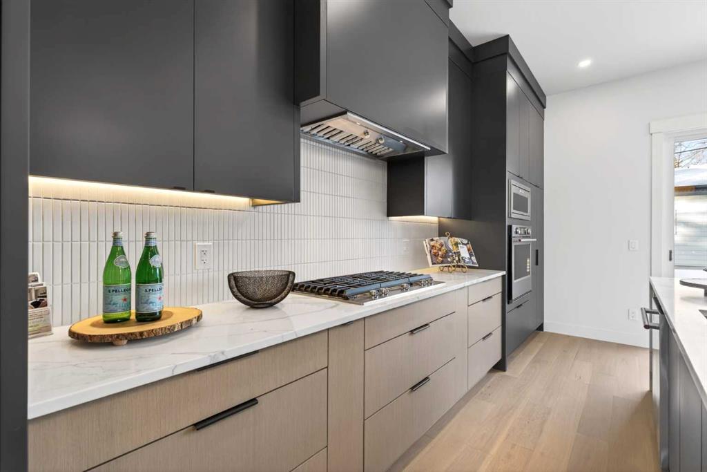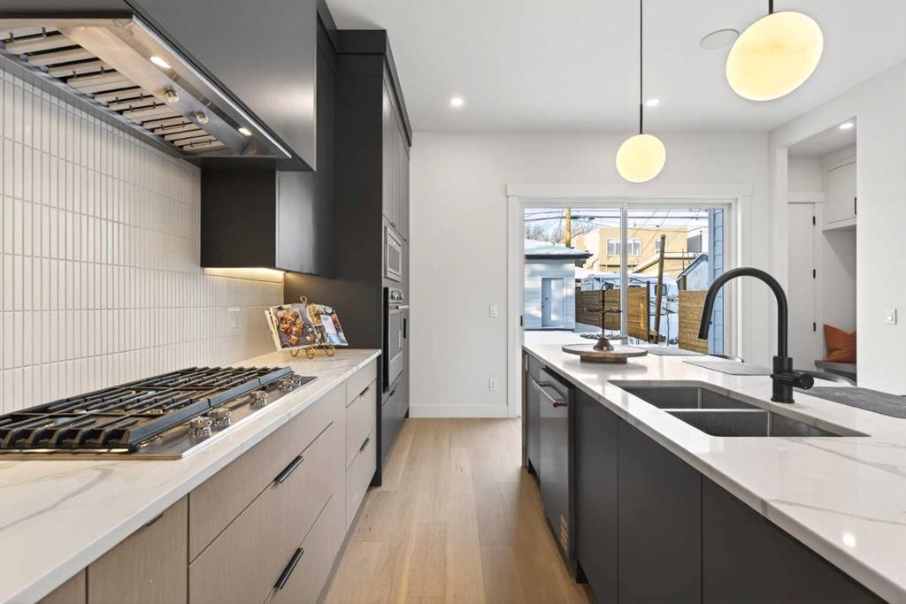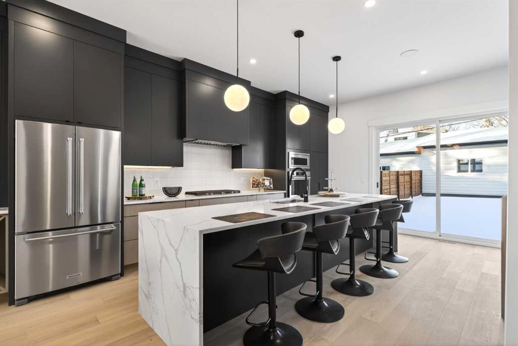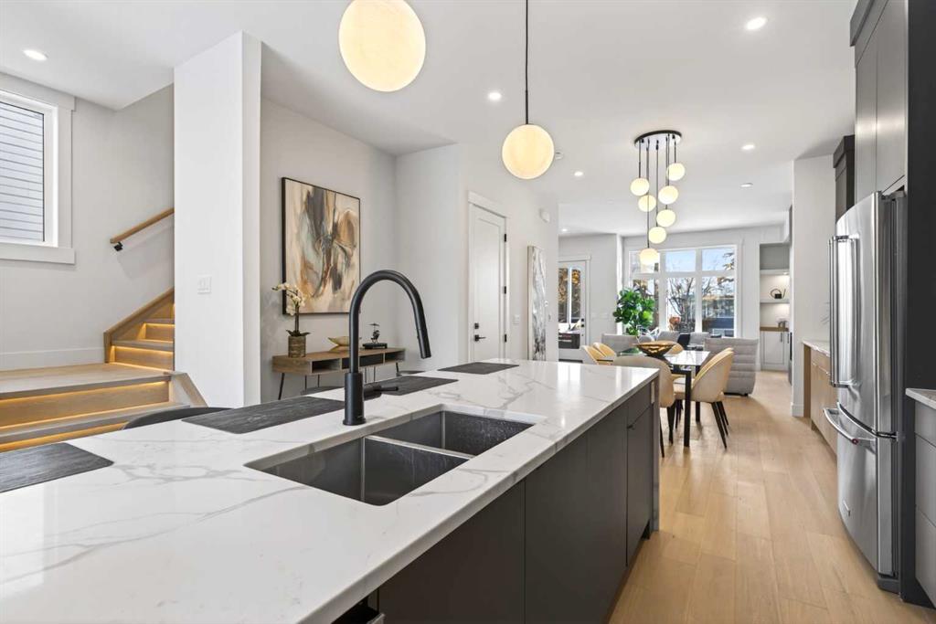 **Construction now Completed** Welcome to this brand-new, exquisitely designed luxury home located in the highly sought-after Killarney inner city area—an exceptional neighbourhood just minutes from downtown Calgary. This stunning residence offers superior finishes and thoughtful features that truly set it apart from the competition. Step into the unique main floor layout and be greeted by an inviting living room to your left, complete with a cozy fireplace and a discreet half bath. The centrally located dining area flows seamlessly into an adjacent built-in pantry and a spacious kitchen at the back, which overlooks a west-facing backyard with a raised deck — perfect for entertaining or relaxing outdoors. A practical mudroom with a walk-in closet completes the main level, providing ample storage and convenience. Upstairs, the large primary bedroom boasts a vaulted ceiling, private balcony, luxurious ensuite, and generous walk-in closet — a true retreat. Two additional secondary bedrooms feature elegant tray ceilings and walk-in closets, complemented by a well-placed upper laundry room for added ease. The fully finished basement offers a legal suite (pending full approval by the City of Calgary) with a central kitchen, two bedrooms positioned on opposite ends for privacy, and a shared living room area. The front bedroom includes a walk-in closet, sharing a modern four-piece bathroom. For ultimate comfort, the home is pre-wired with a rough-in for air conditioning and equipped with speakers on all levels. This home’s value lies in its exceptional style; stunning curb appeal, high-end finishes, and thoughtfully designed living spaces that elevate everyday living.. Don’t miss your chance to own this remarkable and stylish new construction home in the beloved Killarney community.