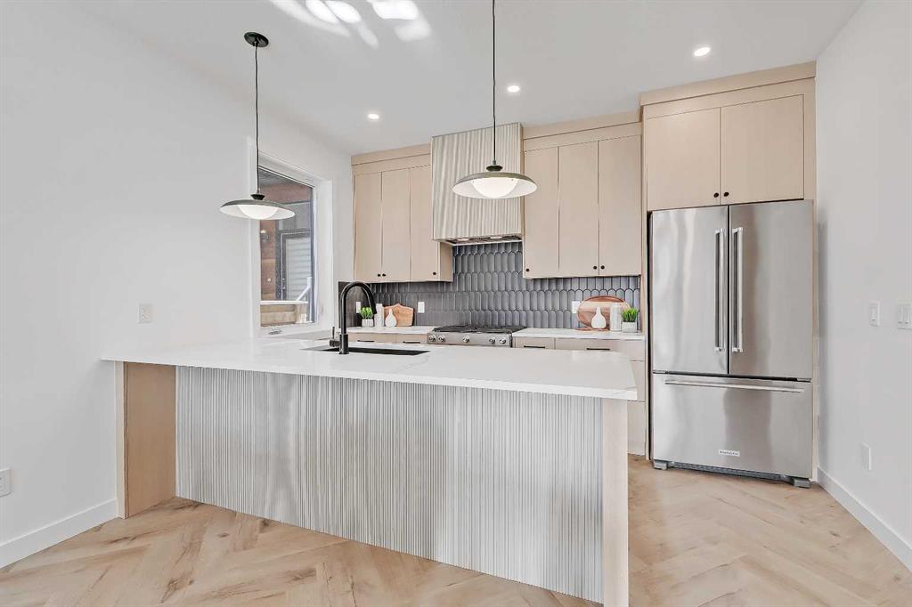 Move into the heart of South Calgary today with this brand-new, walkout townhome that perfectly blends luxury, location, and low-maintenance living! Thoughtfully designed w/ 3 beds, 2.5 baths, and a LEGAL 1 BED SUITE (approved by the city), this is inner-city living without compromise! The interiors strike a perfect balance between modern luxury & livable design. Find high-end finishes that are rare to find at this price point — blonde wood tones, sleek custom cabinetry, and modern & thoughtful tile. Designer hardware, mid-century inspired embellishments, and a clean neutral palette give this space a fresh, elevated vibe. The kitchen is the heart of the home, designed w/ both form and function in mind. A large quartz island anchors the space w/ bar seating for casual meals or morning coffee. There\'s a full stainless steel appliance package, generous cabinetry, and a stylish backsplash that adds just the right amount of visual interest. It\'s open to the dining area and spacious living room & balcony, creating the perfect layout for hosting or just relaxing at home. And don’t forget the upscale powder room, complete w/ designer lighting. Upstairs, the primary suite feels like a boutique hotel retreat w/ a PRIVATE BALCONY, a large walk-in closet, and a modern 3-pc ensuite w/ a fully tiled walk-in shower. Two additional bedrooms and a full bathroom give you space for guests, kids, or home office! And yes, there\'s a laundry room upstairs, tucked conveniently between bedrooms. Downstairs is perfectly set up for a mortgage helper, additional income generator, or the perfect spot for multi-generational living w/ a LEGAL 1-BED SUITE (approved by the city). The modern touches flow into this space as well, w/ an open kitchen & living room space w/ ceiling-height cabinetry, stainless steel appliances, and quartz countertops, complete w/ separate laundry, a great-sized bedroom, and a full 4-pc bathroom. There is a separate entrance to the suite, as well as access from the main home to the suite for complete ease of use. The suite also boasts a private deck. The low-maintenance landscaping and a detached garage at the back are a serious bonus in the inner city. The backyard also features upright bike racks & secure CycleSafe lockers for added convenience. You’re tucked into a tree-lined street in South Calgary, but just a short stroll to absolutely everything. Our Daily Brett and South Calgary Pool & library are just at the end of the street, cSPACE King Edward’s arts & community programming is just a few blocks over, and all the everyday amenities in Marda Loop are w/in walking distance — Blush Lane Organic Market, Safeway, Shoppers, fitness studios, and an incredible lineup of restaurants. You’re minutes from 17th Ave’s restaurants & nightlife, and a quick commute to downtown! Whether you\'re looking for a stylish new home in an established neighbourhood or a long-term rental property w/ strong demand, this unit is an incredible opportunity! *pictures from show suite*
