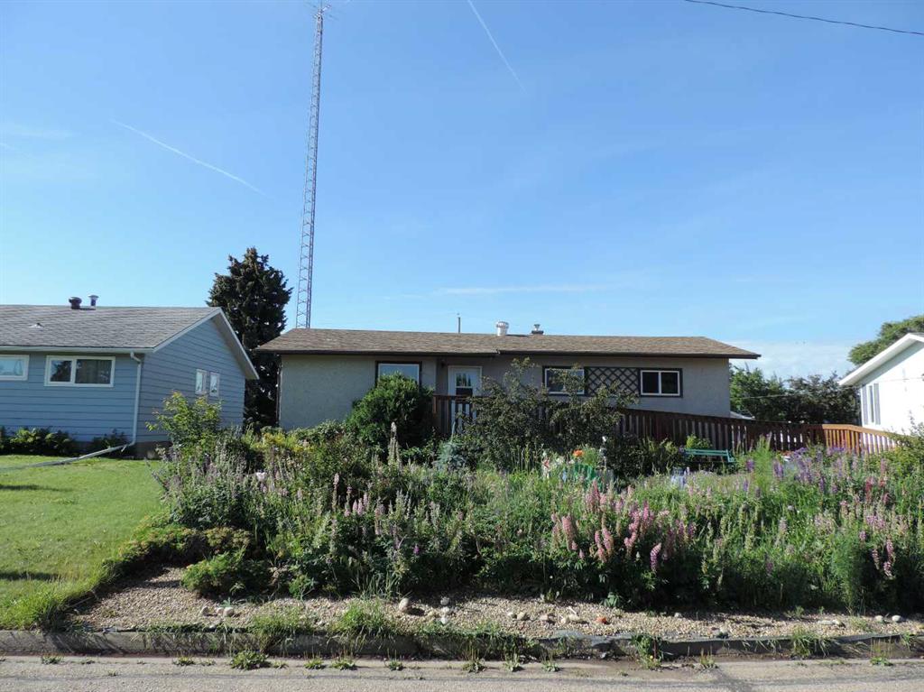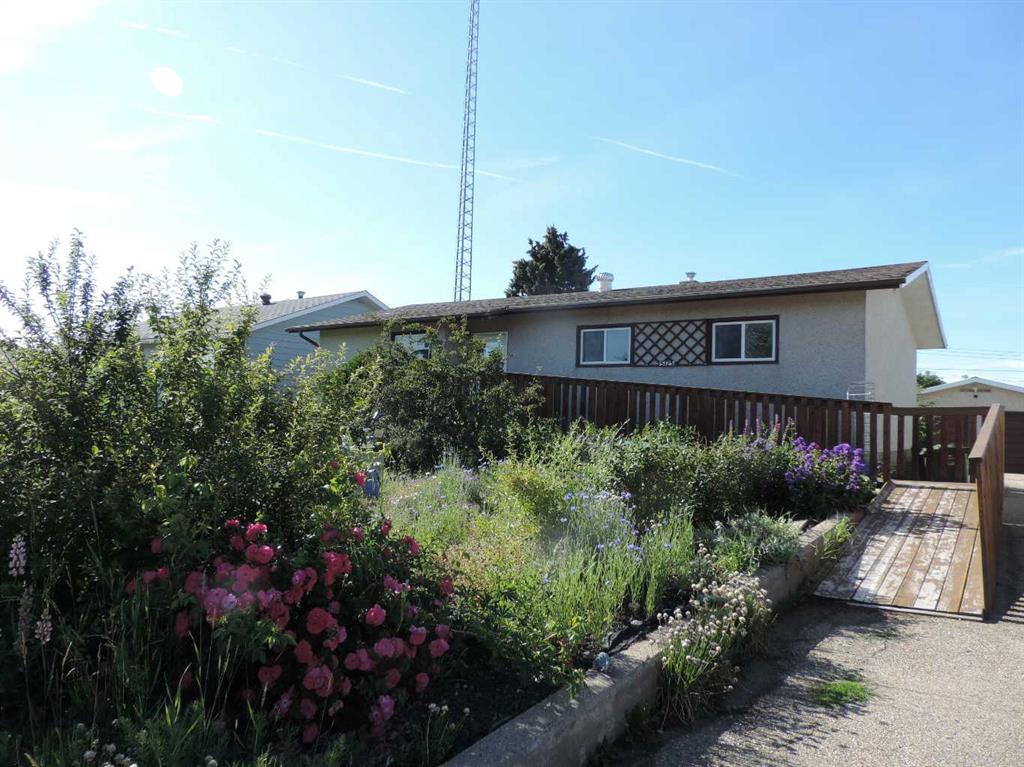 Location, Size, Price its is all here! This property is only a couple of blocks from \"Down Town\". The two bedrooms on the main floor, bath, Kitchen with new flooring has just been painted through out! There is a large South facing back yard that is fenced and await a family to make it home. This property is set up with wheel chair ramps, also one of the bedroom has had a bathroom, shower added to be wheel chair accessible. A double detached garage has a small shed connected for storage. Rimbey is a growing Town with all the amenities of the big city with 80% less stress. Great place to visit and stay.