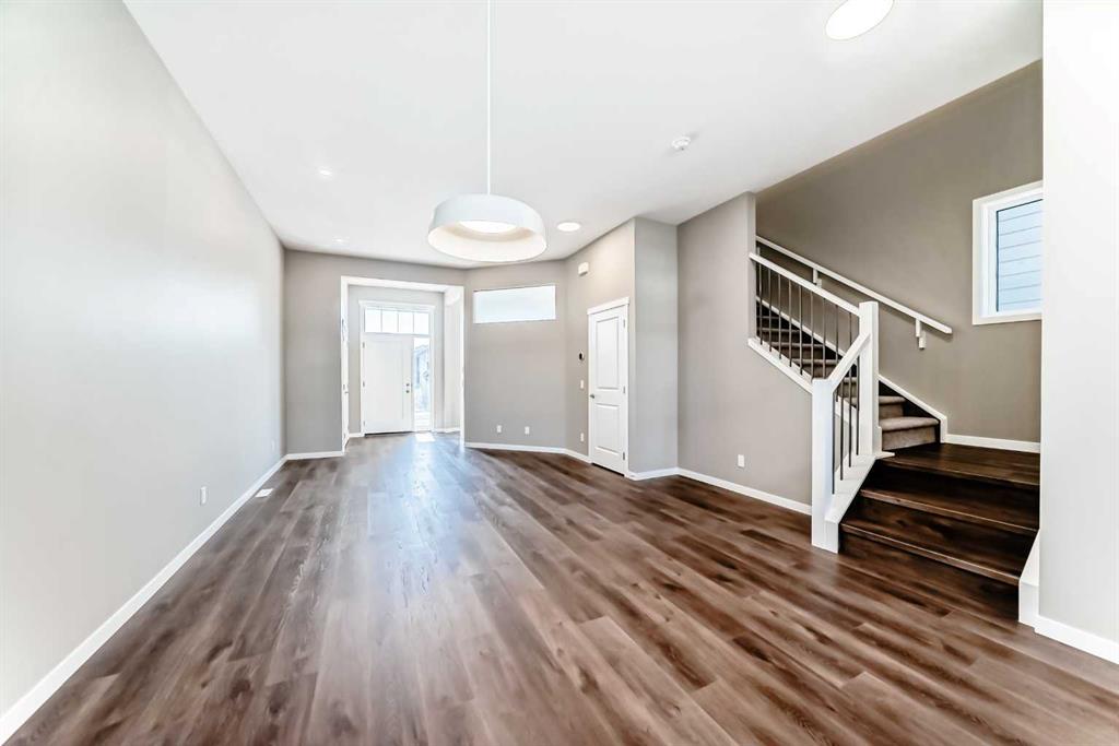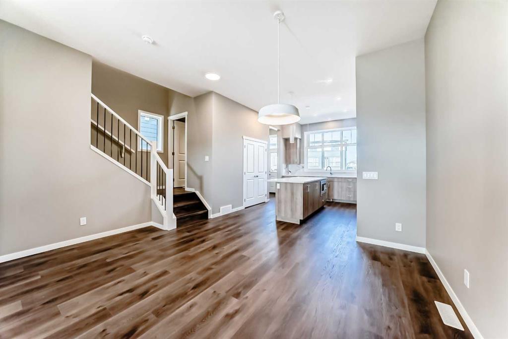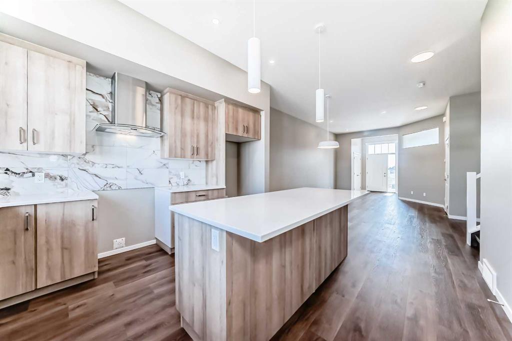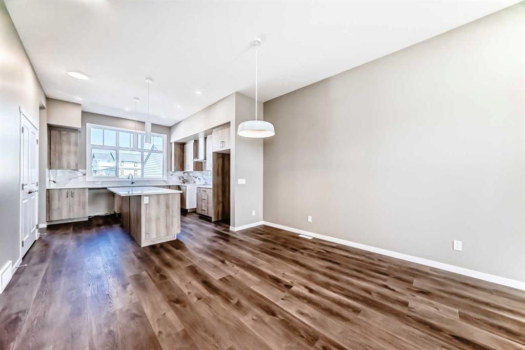 Welcome to this brand-new “Joni” floor plan—an intelligently designed semi-detached home that blends upscale finishes with smart functionality, all in one of Calgary’s most sought-after lake communities. With 10’ ceilings and wide-plank luxury vinyl flooring throughout the main level, the space feels open, elevated, and effortlessly inviting. A front flex room offers endless possibilities for your lifestyle—whether it’s a cozy home office, creative studio, or quiet playroom. Toward the rear of the home, the layout opens into a bright, airy living space designed for connection and comfort. The spacious living room flows seamlessly into an oversized dining area that’s perfect for hosting family dinners or casual gatherings. The kitchen is a true showstopper, featuring a modern palette of raised cabinetry, quartz countertops, stainless steel appliances including a stand alone chimney hoodfan, a modern tile backsplash, and a large centre island that’s perfect for both meal prep and morning coffee. Upstairs, a central bonus room offers an ideal space for movie nights, homework, or simply relaxing. The primary suite feels like a private retreat, complete with a generous walk-in closet and a spa-inspired 5-piece ensuite is the perfect spot to start or end your day. Two additional bedrooms and a full 4-piece bathroom round out the upper level, while the conveniently located laundry room makes day-to-day living that much easier. A secondary entrance adds even more potential, offering the flexibility for a guest suite, in-law space, or additional living area (subject to city/municipality approval and permitting). Set in the award-winning community of Mahogany, this home comes with access to unmatched amenities. Residents enjoy Calgary’s largest freshwater lake, two sandy beaches, a resident-exclusive Beach Club, skating rinks, sport courts, fishing docks, and over 22 km of trails winding through stunning wetlands. Just minutes from the South Health Campus, Seton Urban District, and the Village Market\'s shops, restaurants, and cafés—Mahogany is a lifestyle destination where nature and convenience coexist. Whether it’s paddleboarding on summer mornings or cozy winter walks by the water, life here is built around connection, comfort, and community. This is more than just a place to live—it’s a place to belong. Don’t miss your chance to call Mahogany home.**Photos are from the showhome /previous builds to demonstrate quality of construction & finishes & may not be an exact representation of this home**