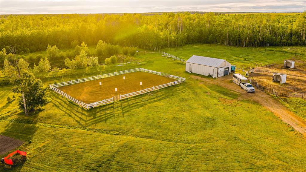 Welcome to Your Private Equestrian Paradise on 160 Acres in Saddle Hills County! Dreaming of wide-open spaces, endless riding trails on your own property, and a luxurious country home? This rare 160-acre retreat offers a perfect blend of forest, fenced pastures, and everything you need for both horse lovers and outdoor enthusiasts. Built in 2014, the stunning home welcomes you with an open-concept layout featuring warm chocolate cabinetry, stainless steel appliances, granite countertops, and a massive eat-up bar that seats eight — perfect for hosting friends after a day on the trails. The spacious living room opens directly to the patio, making indoor-outdoor living a breeze. Downstairs, enjoy stamped concrete flooring with in-floor heating throughout for cozy winter nights. There\'s a bedroom and full 3-piece bathroom with shower, plus a functional laundry area designed for work clothes — no mess in the main living areas. Upstairs, the airy primary suite is open to below, with a luxurious ensuite boasting a dual vanity, two-person tiled shower, soaking tub, and heated floors for spa-like comfort. The primary boasts an extra-ordinary long closet and a small office area as well. Horse facilities include a heated barn with water, sand arena, exercise area, and multiple fenced pastures ready for your herd. The greenhouse and large garden make farm-to-table living easy, and two dugouts ensure plenty of water for livestock. The massive shop is a dream for any hobbyist or professional, with 18 ft ceilings, multiple oversized overhead doors (14x14 ft, 10x8 ft, and two 8x8 ft), 220V power, plumbing for in-floor heating (boiler required), overhead heater, and a huge loft mezzanine with a half bath. Additional features: Two laundry setups (one in the primary suite, one by the shop entry), Natural gas heating and water cisterns (municipal water is available and application is in progress), Greenhouse & garden for self-sufficient living. Whether you\'re a couple looking for a peaceful retreat or a family dreaming of wide-open freedom and equestrian adventures, this property offers unmatched space and amenities. Why settle for ordinary when you can have your own private 160-acre oasis; perfect for work, play and relaxation. Why Saddle Hills County? Located in Alberta’s picturesque Peace Country, Saddle Hills County offers endless opportunities for outdoor adventure and peaceful rural living. Known for its strong agricultural roots and warm community spirit, the region features breathtaking wildlife, rolling hills, and nearby provincial parks like Moonshine Lake and Dunvegan West Wildland Park— perfect for hiking, hunting, or simply unwinding in nature. With reliable natural gas service, ongoing infrastructure improvements (including fibre internet expansion and municipal water hookups), you truly get the best of both worlds: rural serenity with modern comforts. This property delivers unmatched space, freedom, and lifestyle.