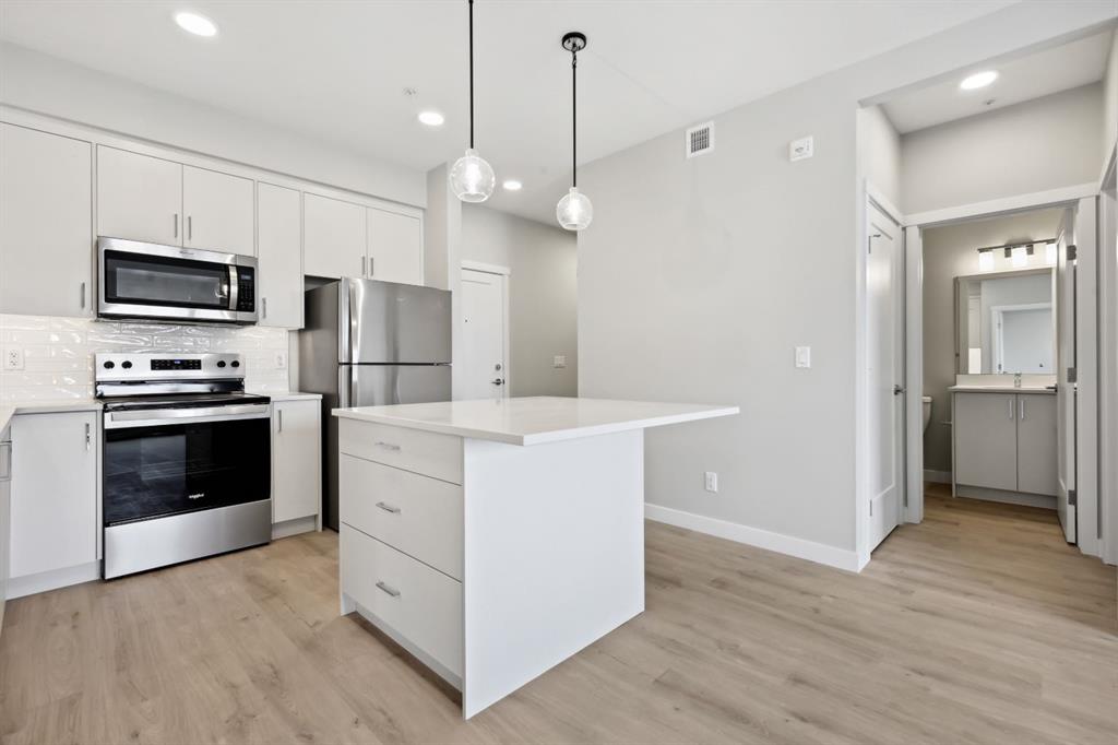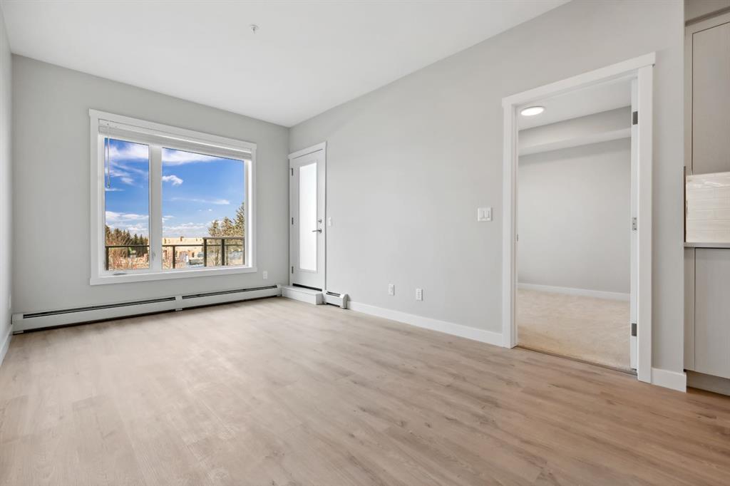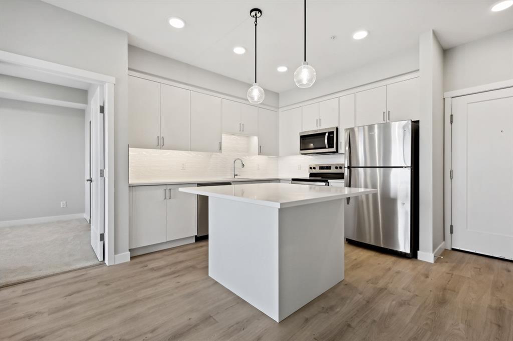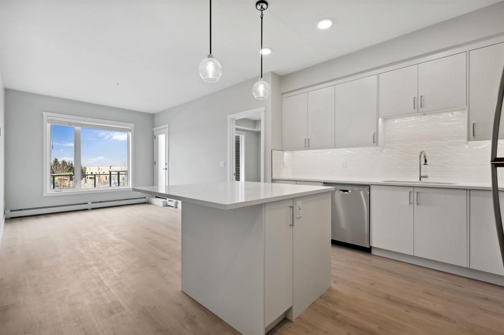 Welcome to this BRAND NEW 2 bedroom, 2 bathroom condo in the amazing SW community of Shawnee Slopes surrounded by amazing walking paths, parks, schools, shopping and steps from the C-Train. This condo features everything you will need with a beautifully finished kitchen with granite counter tops, tiled back splash, microwave/hood vent combo for maximum cupboard space, and stainless steel appliances! It also features a large living area for relaxing or entertaining with a large north facing window and patio with an abundance of natural light, but stating cool in the summer with no direct sunlight on the windows. A large bedroom with a walk through closet, a 3 piece ensuite bathroom as well as a second bedroom and second full bathroom. Front load, in-unit washer and dryer, A den perfect for the at home office, Gym room, or extra storage space! Stay warm in the winter with the HEATED & SECURED underground parking and a secured storage area. This professionally managed building is very well taken care of and shows it! Also comes with free professional rental management for 3 years, perfect for an investor! Book your showing today to check out this AMAZING unit!