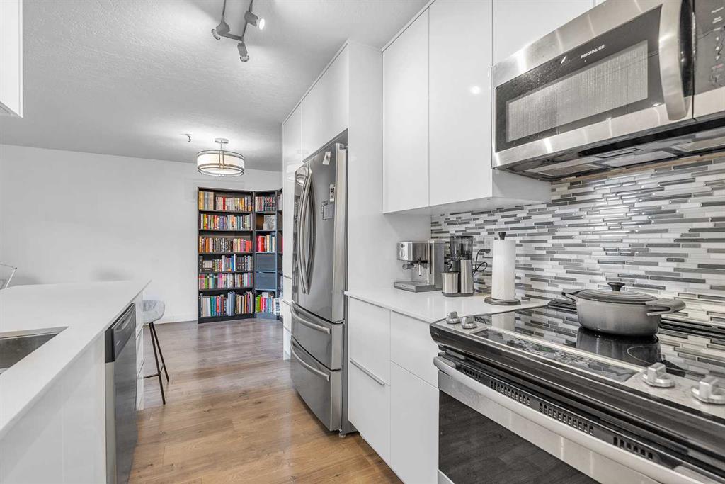 Welcome to your renovated condo in Cambridge Square. Located in the heart of CLIFF BUNGALOW, one of Calgary\'s trendiest districts. This condo is perfect for students or young professionals who have active lifestyles and enjoy a variety of activities, cuisine and shopping. The open floor plan is great for entertaining, while the updated designer kitchen with smart storage makes it easy to host. Relax and unwind in the living room with a patio door that opens to the private patio. The primary suite is spacious and has a walk-in closet that conveniently leads to the laundry and washroom. The 2nd bedroom is ideal for roommates or perfect as WFH office space. The unit comes with a storage locker in the secured UNDERGROUND PARKING. A FULL GYM is available, but your location is within walking distance to some of the best fitness options along 4th ST and 17th AVE. Schedule a showing and enjoy living in this amazing unit right away.