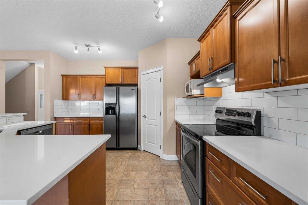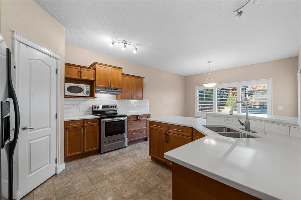 **Beautiful Renovation** Brand New Kitchen Quartz Countertop | New Carpet on Main & Upper Levels | Kitchen Island with Barstool Seating | Walkthrough Pantry | Stainless Steel Appliances | Incredible Living Space | 2,045 SqFt | 4 Bedrooms | 3.5 Bathrooms | High Ceilings | Large Windows | Built-in Storage | Gas Fireplace | Main Level Laundry & Mud Room | Grandiose Bedrooms | Spa Inspired Primary Ensuite Bath | Finished Basement | Great Entertaining Space | Basement Bedroom & 4pc Bath | Gorgeous Backyard | Fully Fenced | Massive Deck | Great Lawn Space | Double Attached Garage | Driveway | Additional Street Parking. Welcome home to your gorgeous move in ready 2-storey family home boasting 3,022 SqFt of developed living space throughout the main, upper and basement levels. This home has open to below ceilings and large windows that compliment its natural beauty and living space. The front door open to a foyer with closet storage for a clean and organized space. The open floor plan kitchen, dining and living rooms make this the premier home to host family functions! The kitchen is upgraded with a sparkling white quartz countertops that pops against the natural wood cabinetry. The centre island is a great space for small meals or to socialize while you cook. The walkthrough pantry leads to your mudroom/laundry room making grocery drop off easy from the garage. The dining room is paired with a door to your expansive back deck making indoor/outdoor living a breeze! The living room is centred with a gas fireplace framed with built-in shelving for your stylish artwork and family photos. The main level laundry and mud room with a walk-in closet off the interior garage door make it accessible for everyone! The main level is complete with a 2pc bath. Upstairs holds 3 grandiose bedrooms. The primary is a personal oasis with a french door closet and private spa like 5pc ensuite bath. The ensuite has a double vanity with vessel sinks, a walk-in shower, a corner deep soaking jet tub and open faced linen shelving. Bedrooms 2 & 3 upstairs are both an incredible size and share the 4pc bath with a tub/shower combo. Downstairs, the finished basement is an incredible entertainment space. The open floor plan rec room provides you with endless opportunities for a media centre, gym, games room or more! The basement has a good sized bedroom and a 4pc bath. Outside is every home owner\'s dream; a massive deck and lawn space all fully fenced for privacy! The deck provides you with an outdoor dining area where as the lawn provides space for the kids to play. The front attached double garage provides you with year round parking for 2 vehicles. The driveway provides parking for 2 more and street parking is readily available too. Situated on a quiet street with a beautiful green space you are walking distance to schools, playgrounds, shopping, dining and just a 5 minute drive to Genesis Place with hockey rinks, pools, indoor soccer and a gym. Hurry and book your showing today!