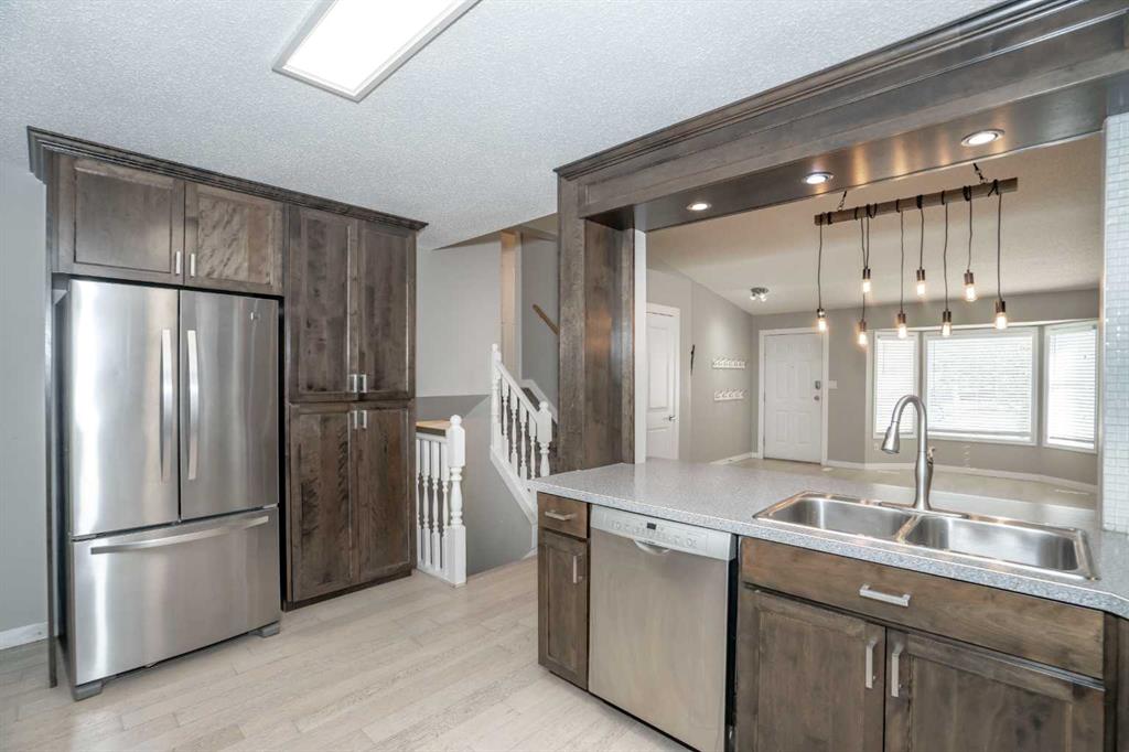 Welcome to this charming 3-level split home in the desirable neighborhood of Saddleback! Step inside to a bright and open living room that flows seamlessly into the dining area and a stunning kitchen with plenty of counter space—perfect for meal prep and entertaining . there are 3 bedrooms upstairs, one of them being the large primary bedroom offering direct access to the main 4-piece bathroom. The lower level features a spacious recreation room with a cozy natural gas fireplace, an extra bedroom, laundry facilities, and plenty of storage space. Outside, relax in your fully fenced backyard with a large deck and pergola—perfect for enjoying warm summer days. Situated on a spacious lot with no neighbors behind, you’ll enjoy privacy along with convenient access to a playground, park, and scenic walking trails. Recent updates include a modernized bathroom, new flooring, hot water tank, siding, and windows. This home is move-in ready, call today to schedule a viewing!