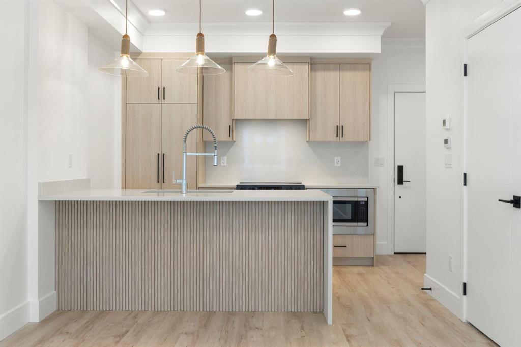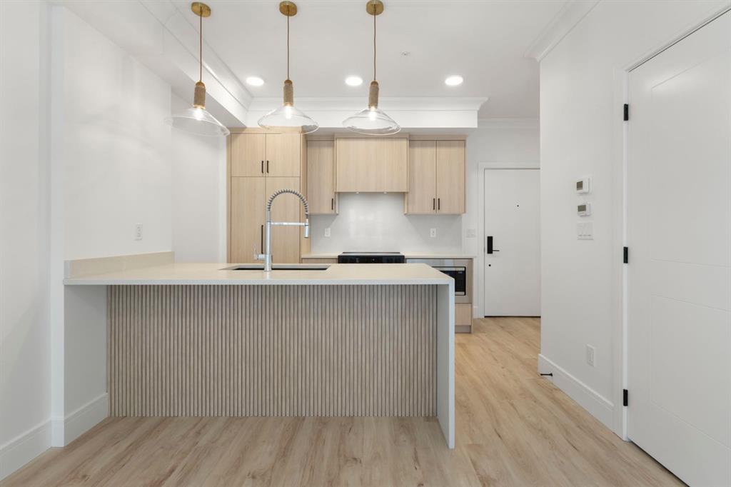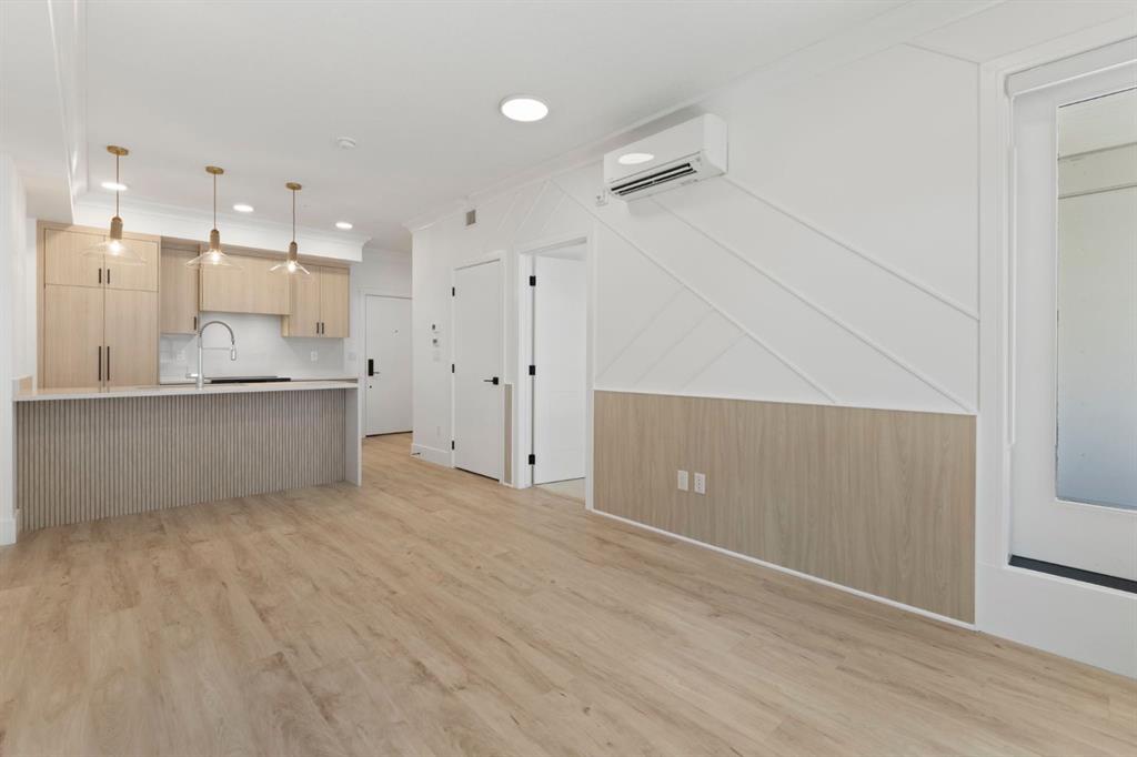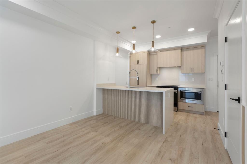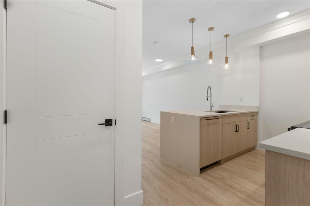 Be the very first to call this pristine, never-lived-in home your own—a sun-filled, modern retreat where every detail feels fresh, flawless, and intentionally designed for the way you live. From the moment you step inside, the open layout draws you in, anchored by a showpiece kitchen where a sleek quartz waterfall island meets premium stainless steel appliances (notice the cabinet front dishwasher and fridge!), an upgraded hood fan, and an oversized sink that makes both cooking and hosting effortless. Natural light pours through oversized windows into both the bedroom and living room, creating a warm, airy atmosphere. Your spacious bedroom easily accommodates a queen bed with nightstands. The bathroom echoes the home’s elevated design with quartz countertops and high-quality fixtures including upgraded tile from the tub to the ceiling, upgraded black rainfall shower head w/ wand & the tile backsplash spans the height of the wall above the beautiful vanity w/ quartz counters! Step outside to your private second-floor balcony—perfect for morning coffee, summer BBQs, or winding down with your favourite beverage as the sun sets. Comfort is elevated with central air conditioning, in-suite laundry, and a titled underground parking stall, plus visitor parking and secure bicycle storage for added convenience. Set within Dean’s Landing in Calgary’s sought-after University District, you’re surrounded by a vibrant, walkable community where trendy cafés, restaurants, and everyday conveniences are just steps from your door. Enjoy easy access to green spaces, bike paths, the University of Calgary, Foothills Medical Centre, and downtown—blending urban energy with neighborhood charm. This unit won’t last long! Call your favourite realtor today to book a private viewing of this beautiful condo.