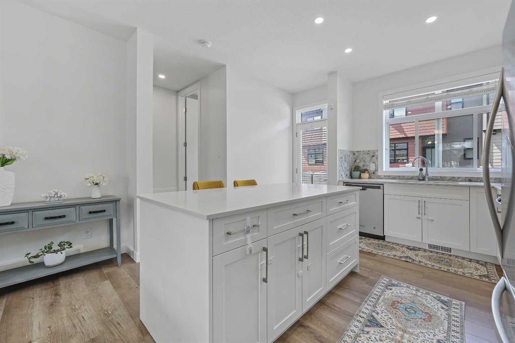 With nearly 1,700 square feet of thoughtfully designed space, this 3-bedroom, 3.5-bathroom townhome features a bright, open-concept layout with contemporary finishes throughout. The main floor showcases wide-plank vinyl flooring, quartz countertops, full-height cabinetry, soft-close drawers, and a central kitchen island—perfect for everyday living and entertaining.