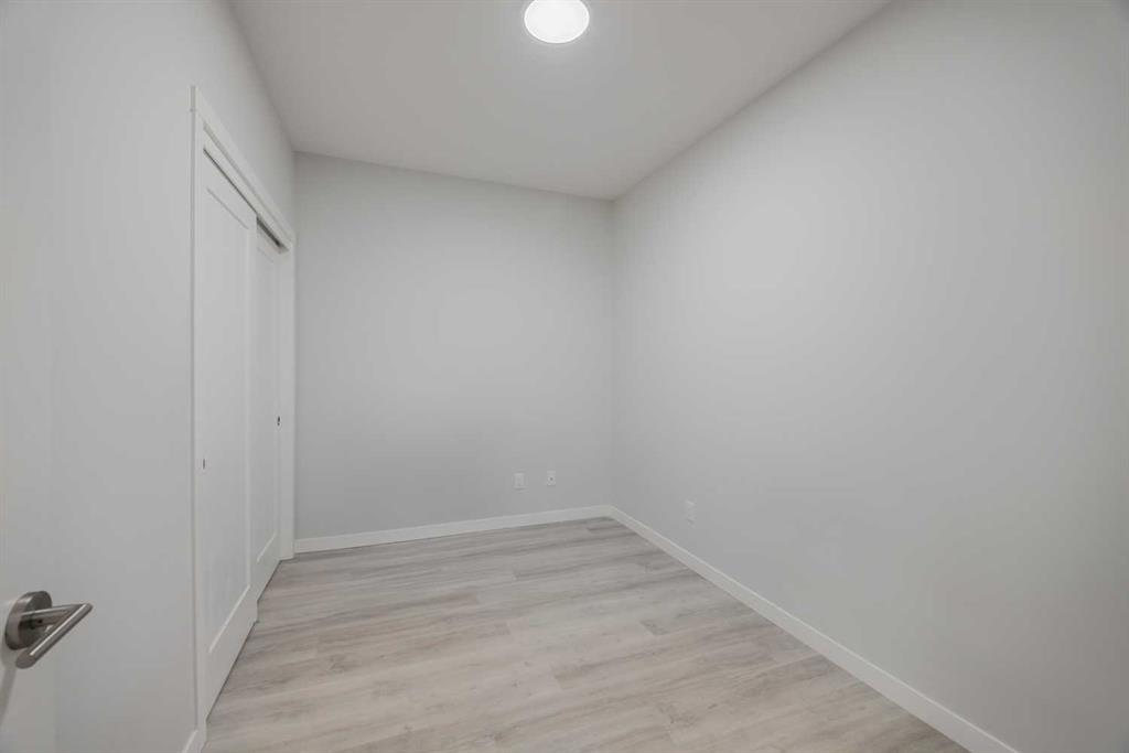 Stylish and modern, this 2-bedroom, 1-bathroom condo is part of the newly built (2023) Fish Creek Exchange in the desirable neighborhood of Shawnee Slopes. Offering 743 sq ft (builder size), it features luxury vinyl plank flooring, high ceilings, and a sleek kitchen with quartz countertops, stainless steel appliances, and full-height cabinetry. A well-designed 4-piece bathroom completes the polished interior.