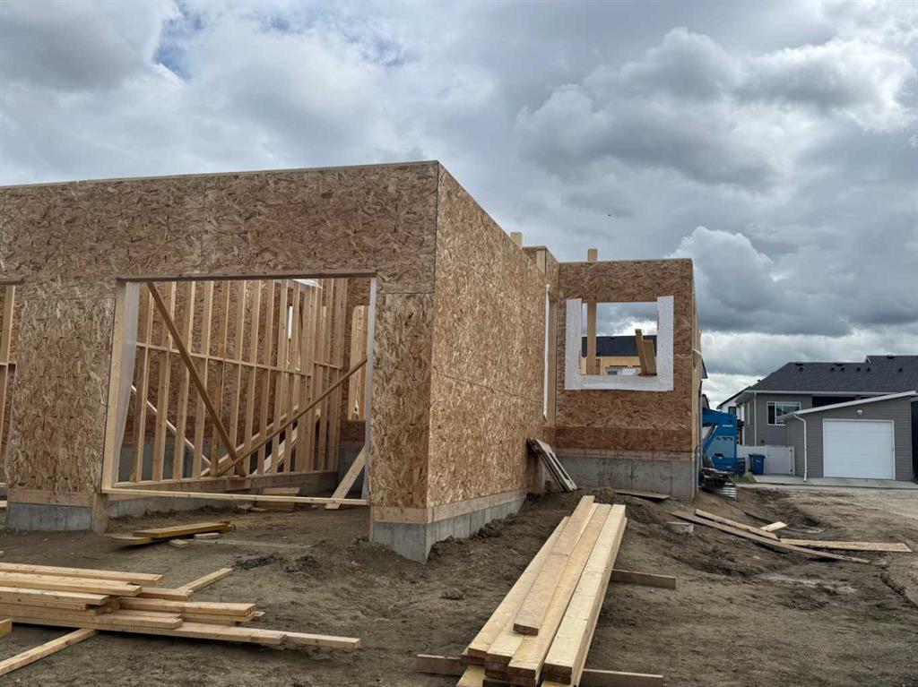 Brand new bungalow in Red Deer\'s sought after community Evergreen! This fully finished 3 bedroom/3 bathroom home offers effortless luxury and comfort, ideal for downsizers. Featuring an open-concept layout with 9-foot ceilings and stylish vinyl plank flooring throughout, it boasts a light-filled living room with views to the south. The chef-inspired kitchen includes a center island, corner pantry, soft-close cabinets, under-cabinet lighting, a granite sink, and upgraded stainless steel appliances. The serene primary bedroom offers plush carpeting, a walk-in closet, and a spa-like ensuite with double sinks and a luxurious shower with sliding glass door. Main floor laundry and handy powder room for guests. The basement with 9-foot ceilings offers a family room, 2 bedrooms, 4piece bathroom, and another laundry hookup is roughed in for future use. Additional features include a high-efficiency furnace, hot water tank, concrete front driveway and sidewalk, black dirt rear yard are included. Located in Evergreen with all of Red Deer\'s amenities close by including, schools, pickleball courts, golf course, Clearview market and city transit. This home offers easy access to recreation and nature trails with a focus on outdoor living, & greenspace. GST is included with a rebate to the builder, and a comprehensive new home warranty adds peace of mind. Taxes to be assessed. Measurements & pics will be updated as build progresses, photos and renderings are examples from a similar home built previously and do not necessarily reflect the finishes and colors used in this home. ****Under construction completion approx March 2026**