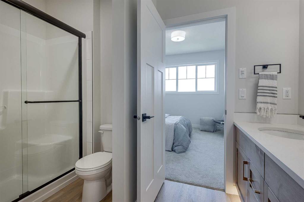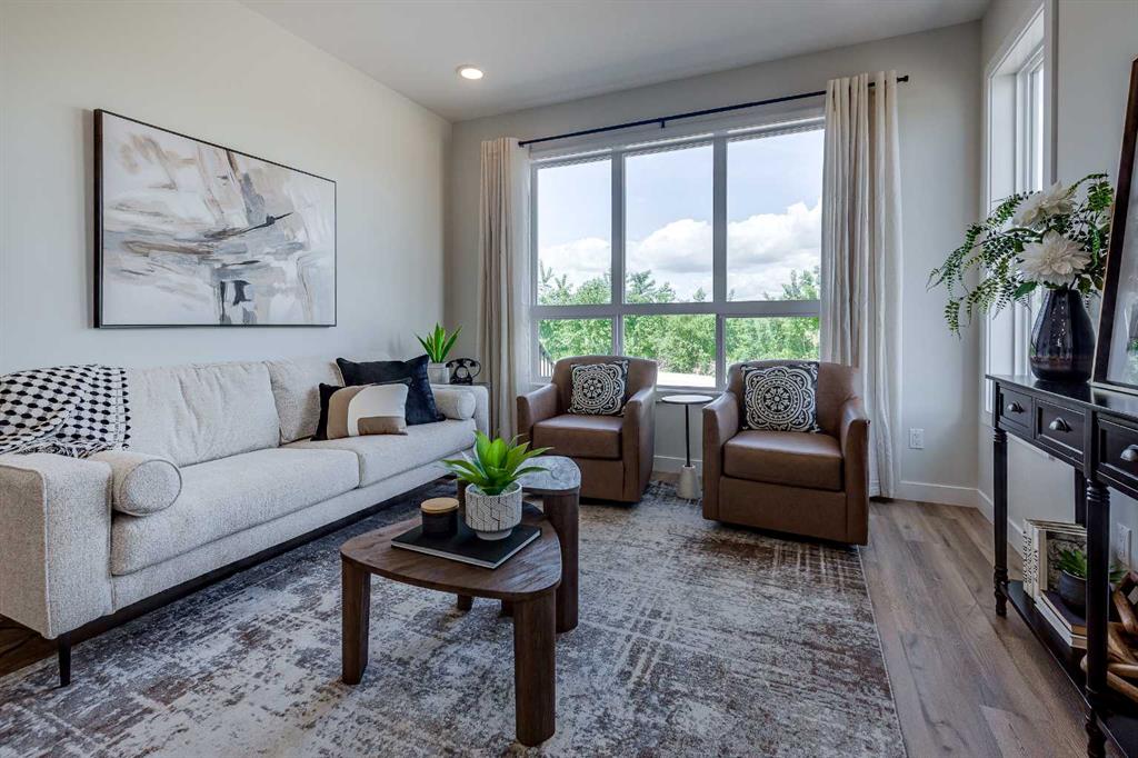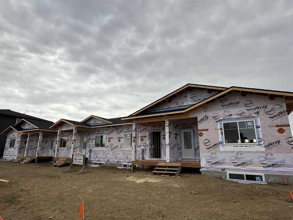 Imagine starting your mornings with coffee on a sunny south-facing deck, then strolling peaceful walking paths just steps from your door. This brand new modern bungalow townhouse in Sylvan Lake’s new Grayhawk community offers the perfect blend of style, comfort, and convenience—without the condo fees. Whether you’re hosting friends in your open-concept living space, planning future basement movie nights, or simply enjoying the quiet of your own backyard, this home is designed to fit the way you live. Impressive primary bedroom with beautiful ensuite, has double sinks, stand up shower with glass door and large walk in closet. 2 pce powder room for guests and handy main floor laundry. Bright open floor plan with functional kitchen, corner pantry, quartz countertops, stainless steel appliances. Luxury vinyl plank flooring throughout living, dining and kitchen area plus the 9 ft ceilings make it feel spacious. Basement is undeveloped but has potential for family room, 2 more bedrooms, and another 4pce bathroom. You’ll be close to the lake, golf courses, and all the amenities you need, yet tucked away in a peaceful neighborhood that feels like a retreat. Built for energy efficiency and backed by a New Home Warranty, it’s a home that offers peace of mind as much as it does beauty. 2 stall gravel parking pad. Proposed completion is set for Spring 2026—yours to look forward to. GST included with purchase price rebate to the builder. Taxes to be assessed. All pictures are of similar home and may not be exact.
