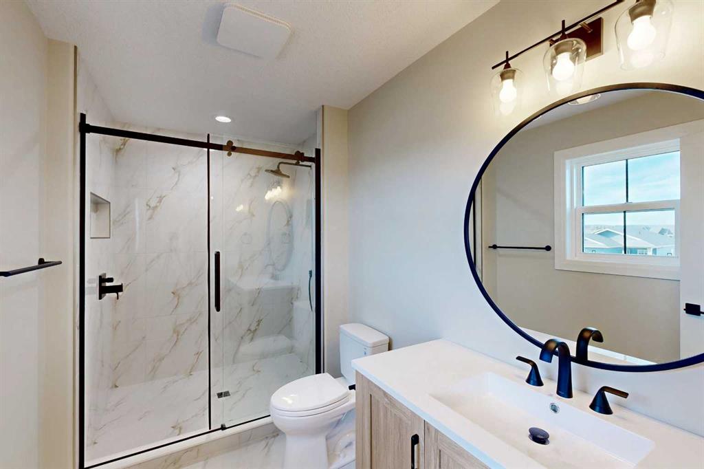 Upstairs, the primary bedroom retreat boasts an oversized tiled shower in the ensuite, while all closets in the home feature custom built-in organizers for maximum storage and function. You’ll also find spacious bedrooms, a dedicated laundry room, and smart design for everyday living. A second side entrance to the basement adds future potential, with in-floor heating rough-in already in place.