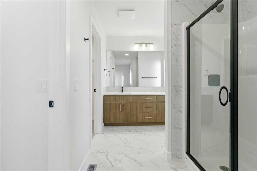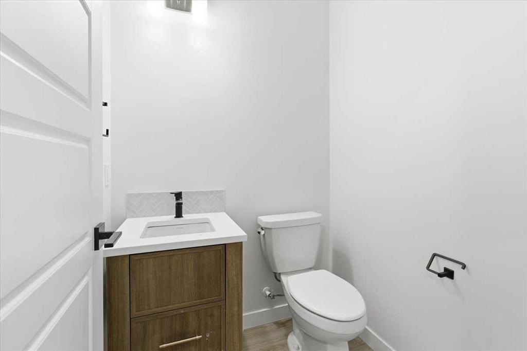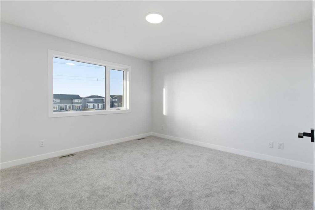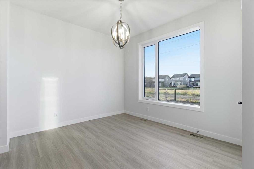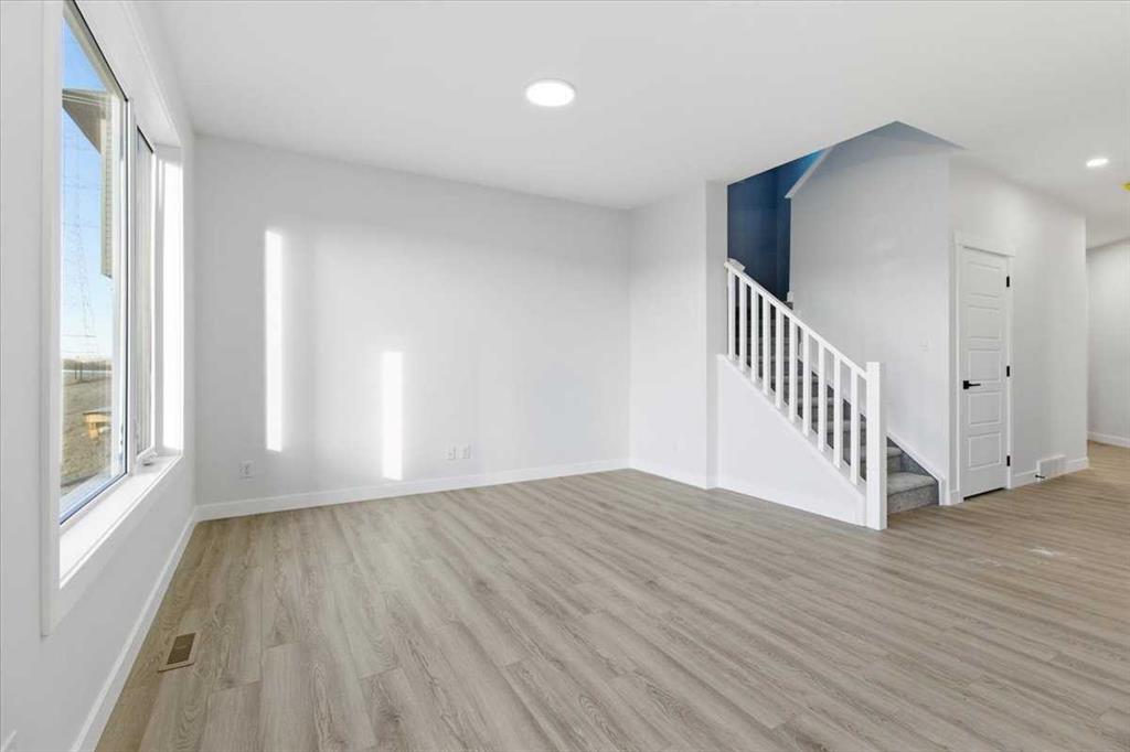 Welcome to this three bedroom semi-detached home in Dawson’s Landing, Chestermere. Featuring an open floor plan with 9 ft ceilings and Luxury Vinyl Plank flooring throughout the main level, this home features a trendy kitchen with quartz countertops, upgraded gas range and walk through pantry. The main floor includes a flex room and SEPARATE SIDE ENTRANCE for many future basement development options. Upstairs, there is a central bonus room between the primary suite and two additional bedrooms, all with walk in closets. The primary bedroom offers an ensuite with a large shower and double vanity. Nestled in a community surrounded by 30 acres of future protected wetlands, enjoy walking trails, scenic pathways, a boardwalk and viewing areas. This home is within WALKING DISTANCE TO EAST LAKE ELEMENTARY SCHOOL, and less than 30 minutes to Calgary Airport. Embrace a blend of living in the relaxing natural setting in Dawson\'s Landing and the PEACE OF MIND that comes with owning a quality built home by NuVista Homes.