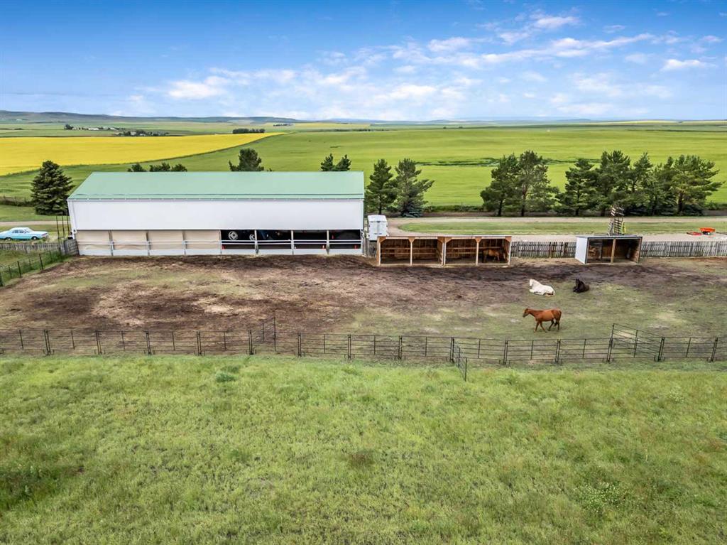 Welcome to this prestigious Rancher style bungalow on 12.63+- acres north of Nanton just off High Way #2. Privately presented amongst the amazing landscape and trees, this property will be your oasis. Mature, loved carefully placed trees and shrubs are surrounding this private yard and home for your lifestyle enjoyment. Circular drive way for the home and for the out buildings give this gorgeous acreage easy access, and opens the doors for many walks of life. The beautiful laneway leads you through Scotch Pine, Bay Willow, Red Elderberry + ! Bring the big rig, the horse trailers, bring the company over. This property is a true \" Must see\" Located off the beaten path as well as bordering on the west side some gorgeous farm land, opens up the doors to pure 24/7 enjoyment. Horse set up with 42 X 96 arena. The Sellers have converted this gorgeous building with rubber crush and 7 ml gyro rock footing. Carefully selected for a perfect footing to work the horses. Many a discipline can enjoy this arena. Open to one side and many options available for the horse trainer, some who loves to ride out of the weather, or what ever you want to make it. 40 X 40 Quonset with 220 wiring /gas to the building for future plans, and is located on the south end of the property. Close proximity to the arena, this building has a separate office area that could be used as a tack room , or for business. There is also an outdoor riding arena !! 105 ft X 180 ft located between indoor arena/storage/hay storage/equip storage building. 3 newer shelters, 2 water hydrants, an 1 auto waterer, separate paddocks, grass, hay land. The seller has used the extra grass land framing the home portion of the acreage for an exercise field. Its a lovely ride just around your own property !! This property lends to good rotation options for the animals and to grow some hay to be self sufficient with your sweet set up. Views are spectacular but enjoying the seclusion is amazing. The sellers compliment the neighbors on being the best !! The home has full on REVERSE OSMOSIS through out its entirety !! Previous owners set it up for the whole house which is amazing !! This home was built to impress !! Beautiful detail, bright and pleasing home with plenty of windows, main floor laundry, great entertainment spaces, lovely custom built areas. Extras and upgrades include gorgeous Casa Blanca fans, BBQ hook up on deck, built ins, upgraded appliances, Hot water heating including infloor in attached garage ( also roughed in for water ) , TONS of storage and extra rooms/closets/shelving, This home is solid built and is exceptional !! Another bonus to this well loved and maintained land is option to produce 150 square bales of hay each year. This year the sellers looking at a possible second crop. Measurements , a list of tree types and fun visitors to the property are in the document attachments. Sellers offer a recent ( a little over a year old) inspection available for viewing.