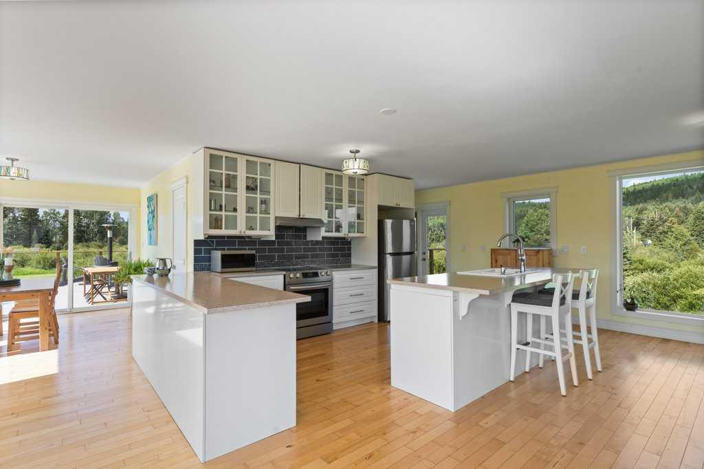 Inside you will find warm wood flooring upstairs, expansive windows framing stunning private views, and the timeless comfort that only comes from being surrounded by nature and a deck to enjoy every angle from.