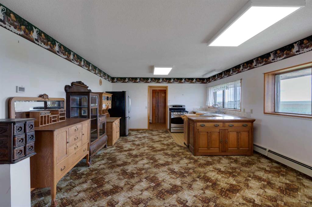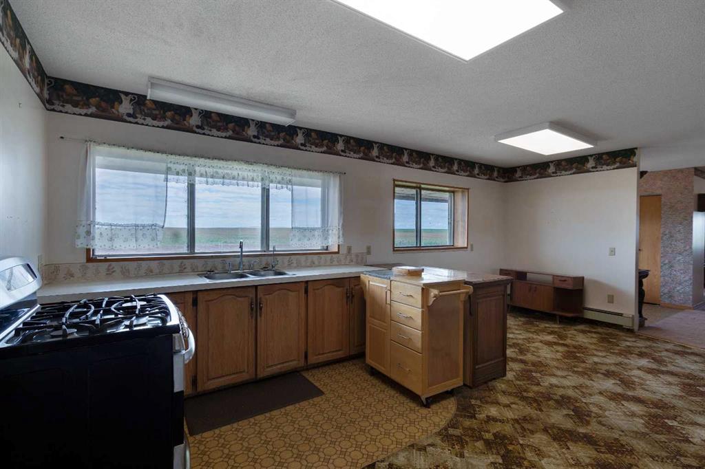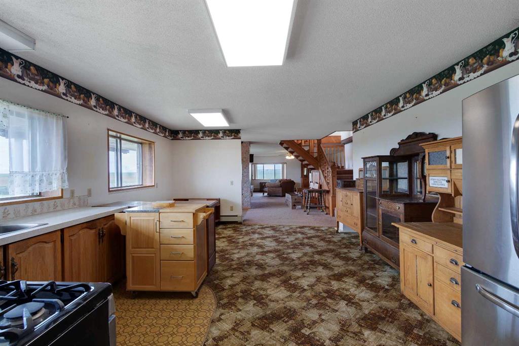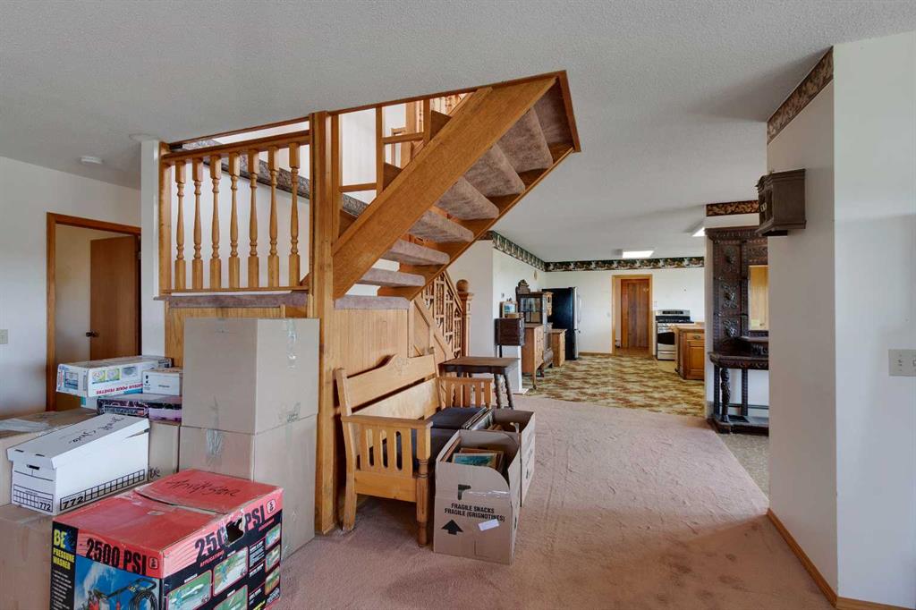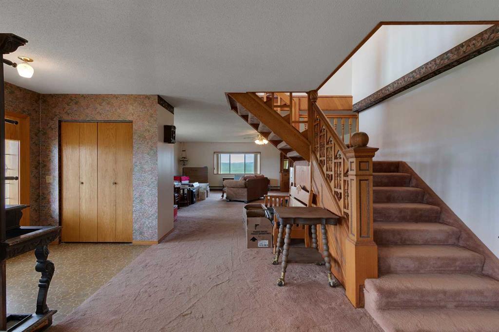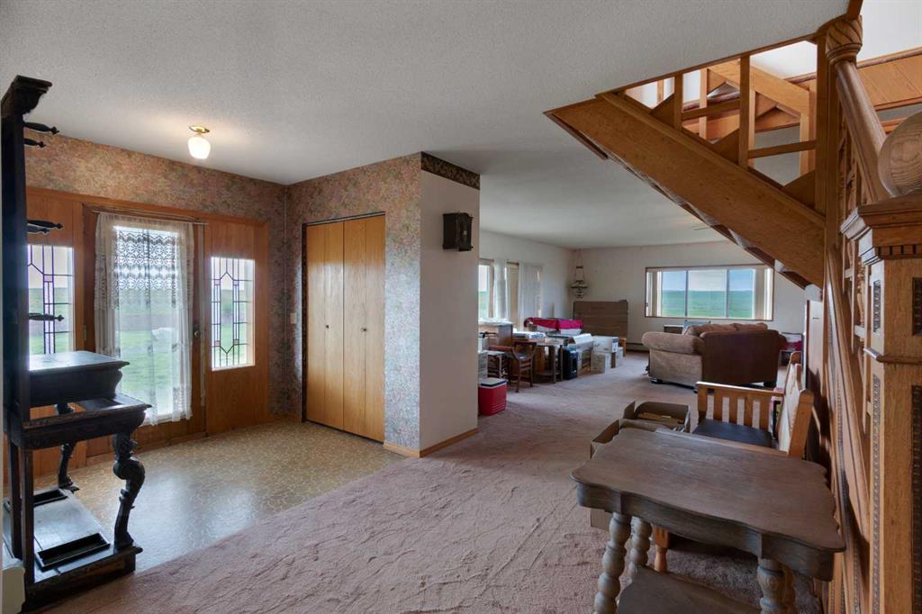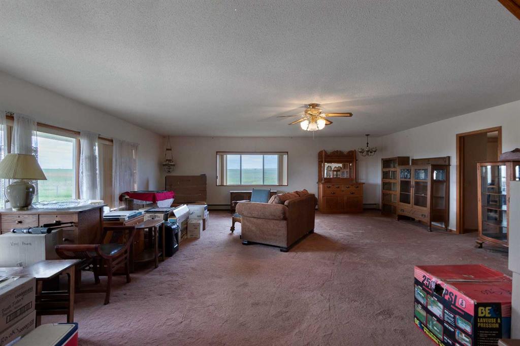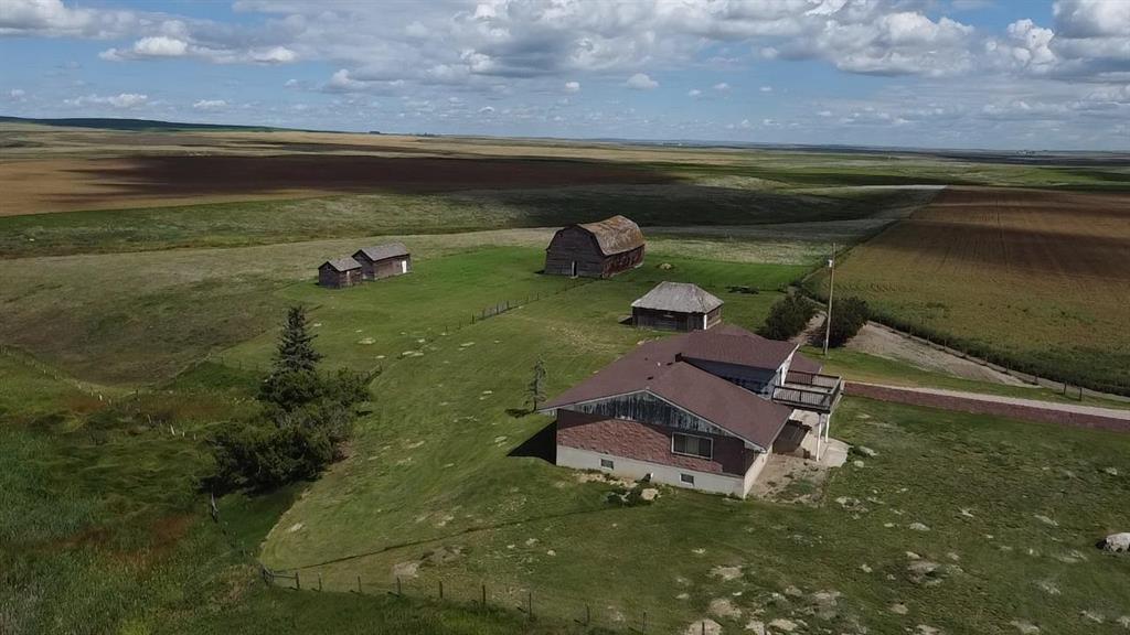 Just 15 minutes northeast of the Town of Vulcan, this 8.86-acre property offers a rare opportunity to own a solidly built country home with room to make it your own. Constructed in 1981 with concrete block exterior walls and poured concrete basement walls, this bungalow boasts over 2,450 sq. ft. on the main level, plus a 278 sq. ft. upper level with a walk-out deck. The home has a dated interior but tremendous potential to increase value with cosmetic updates. The main floor features an open-concept kitchen, dining, and living room, four spacious bedrooms, a full bathroom, a large laundry room, and a mudroom with sink at the main entrance. The upper level offers a bright family room with deck access and sweeping views of the countryside. The basement, currently used for storage, has a gravel floor, high ceilings, and great potential for development. Recent updates include a boiler system replaced within the past five years. Water is supplied by a drilled well, and there is also a right of way for a water co-op on the property. The acreage includes fenced pasture land, an older but well-maintained shop, additional older buildings used for storage, and an older barn in poor condition. The peaceful setting is enhanced by a natural draw—a small valley—running through the pasture at the north end of the property. If you’re searching for a strong, well-built home in a tranquil rural setting—ready for your personal touch—this property is worth a closer look.