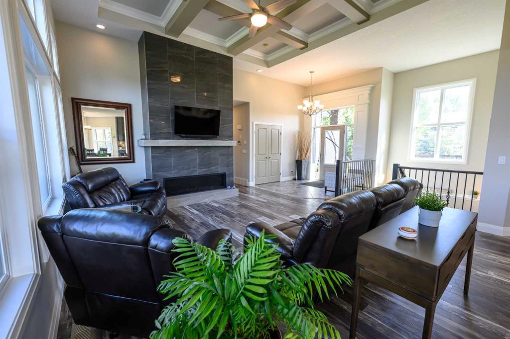 Step inside this forever home and be captivated by sweeping forest views through expansive oversized windows. The coffered ceilings soar above an open-concept main floor, where a gourmet kitchen with a spacious island beckons for lively gatherings with family and friends. The seamless flow continues through a sunlit dining area to a partially covered deck, perfect for outdoor meals or quiet evenings under the stars.