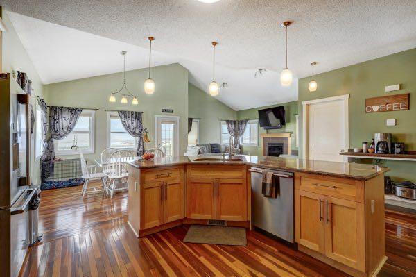 Bring us an offer & have a Quick transition out of the city and into country life. Discover a unique oasis just minutes north of Drumheller. This custom built home on 3.42 acres offers an unparallelled blend of comfort and sophistication. Boasting five bedrooms and three baths, including a magnificent en suite with jet tub and separate shower this residence exudes luxury. Step into the heart of the home where a spectacular kitchen adorned with beautiful granite countertops, invites culinary delights. The spacious living and dining area feature vaulted ceiling, a gas fireplace and stunning Brazilian walnut hardwood floors, creating an ambiance of warm and elegance. Enjoy the convenience of main floor laundry, and the luxury of six appliances included. The rear deck provides a tranquil space to unwind, overlooking the vast landscape. Fully developed basement adds to the homes appeal complemented by attached double car garage for added convenience. For those with a passion for hobbies, a large older workshop with a concrete floor, await your creative endeavours with breathtaking panoramic views, and ample room for horses. This property is not just a home, It’s a lifestyle, experience the serenity of rural living with the convenience of modern amenities in this truly one of a kind residence.