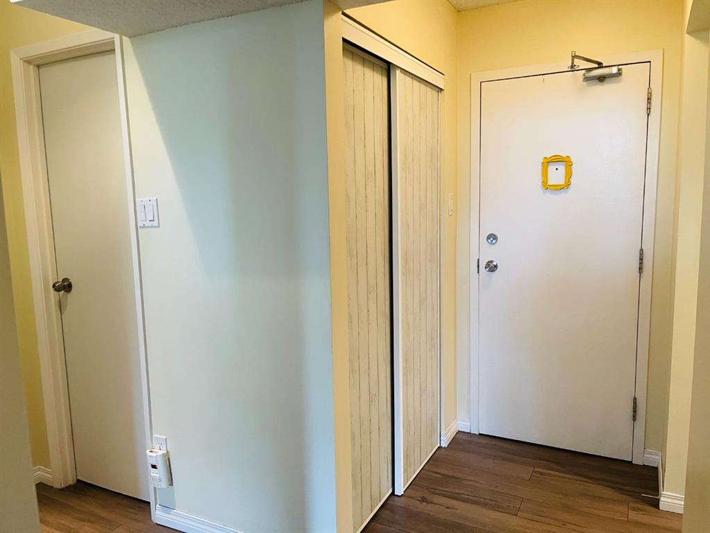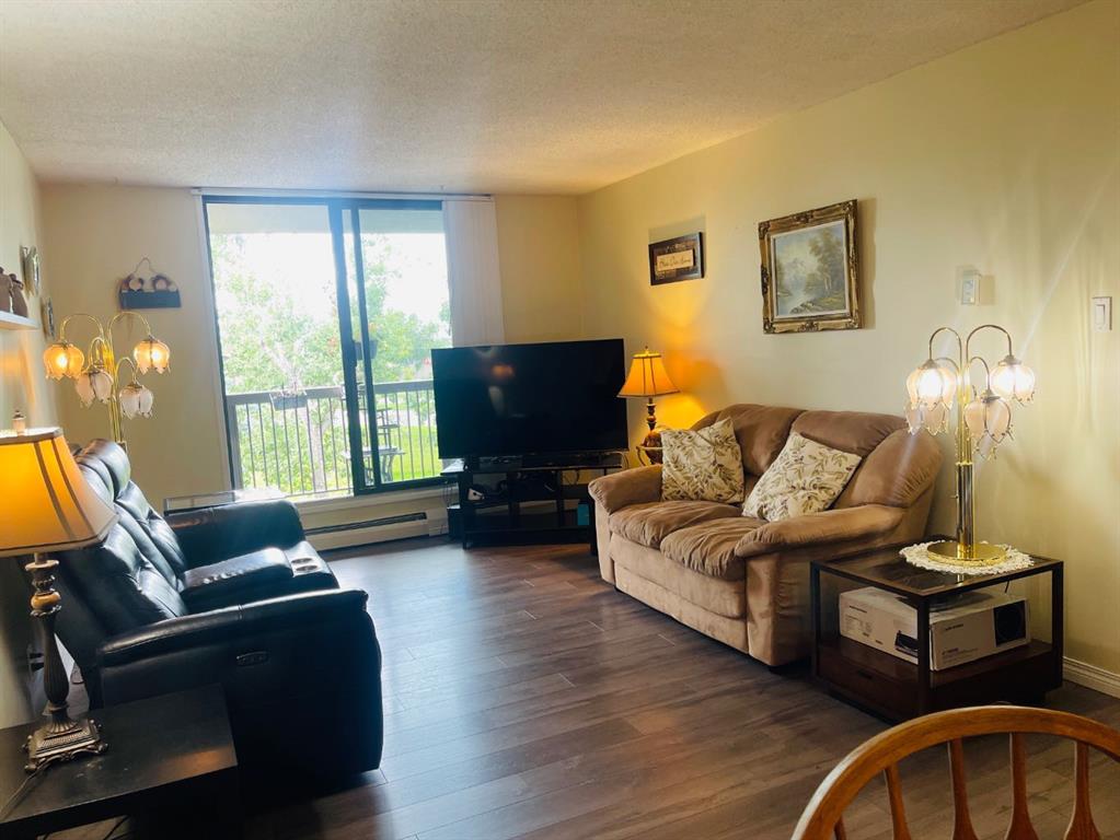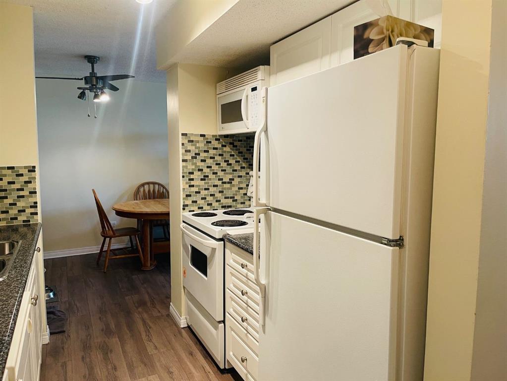 Welcome to Maryland Terrace, a quiet concrete building that\'s well run, well maintained, and secure. Your new 2-bedroom, 1-bathroom with in-suite laundry offers a very good size at 874 sq./ft. This unit features a condo fee that includes electricity, heat ,water & a on-site manager. You\'ll love the galley-style kitchen with modern white cabinets, a microwave hood fan allowing for more counter space, and matching white appliances including a built-in dishwasher. You will appreciate the formal dining area and spacious living room with sliding doors leading to an oversized covered balcony, perfect for barbecuing and entertaining. Additional highlights include newer laminate flooring, new backsplash, and an upgraded full bathroom. The master is huge with a walk-in closet and room for a king-size bed and plenty more. This unit is very clean and well maintained. The building boasts excellent amenities including a gym, sauna, and games room. Its prime location near Sunridge Mall offers fantastic shopping, with easy access to downtown Calgary, SAIT/U of C, public transit, and major routes like the Trans-Canada Highway and Deerfoot Trail.
