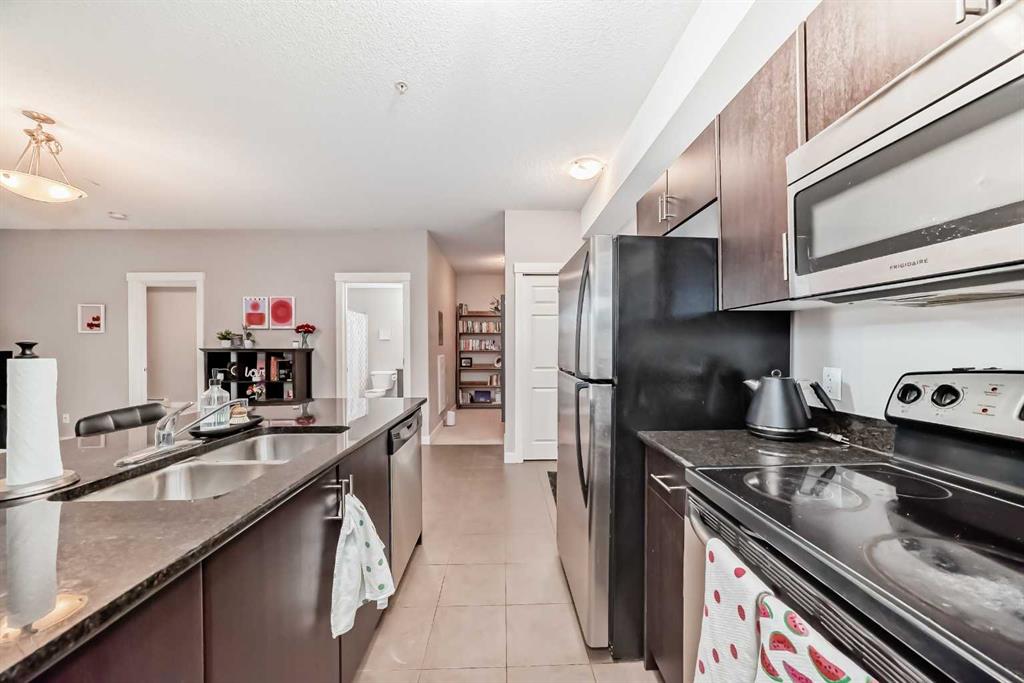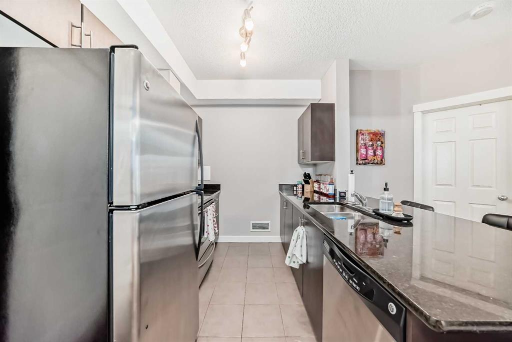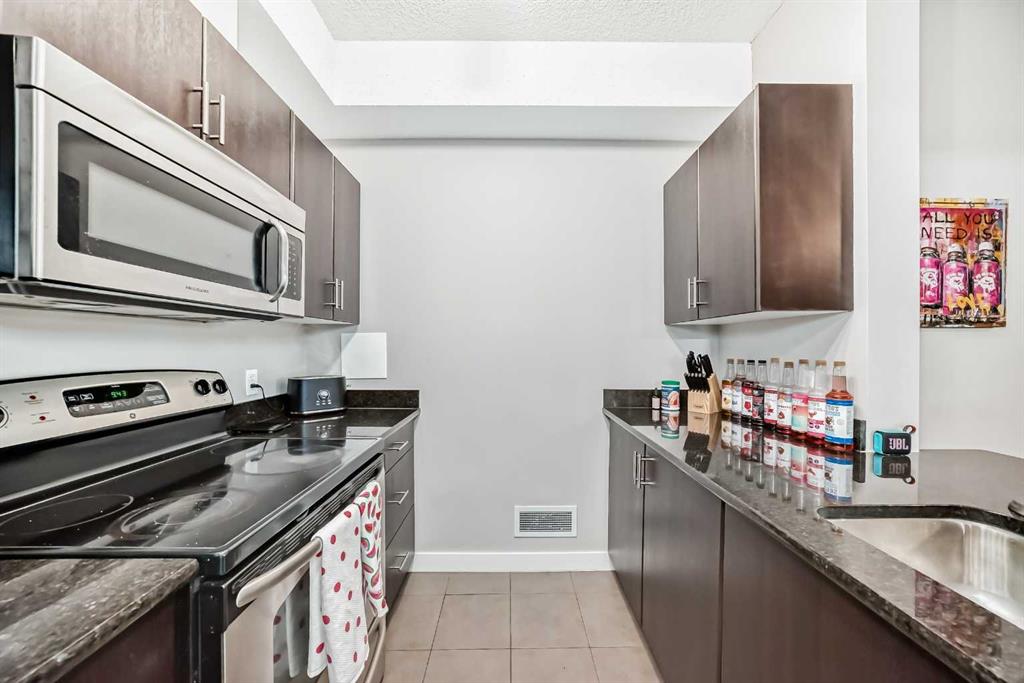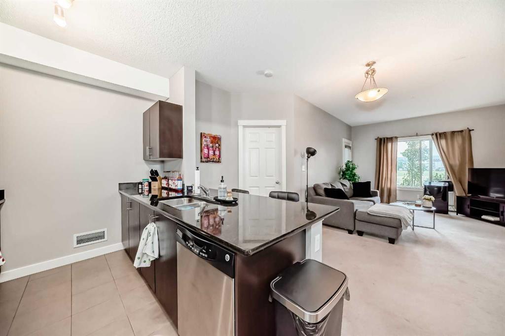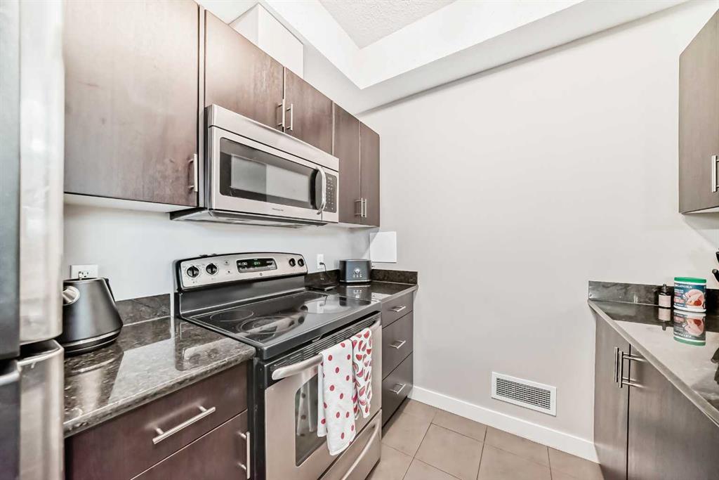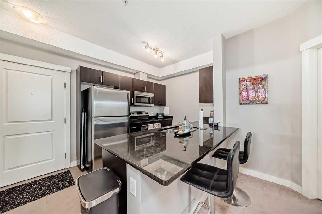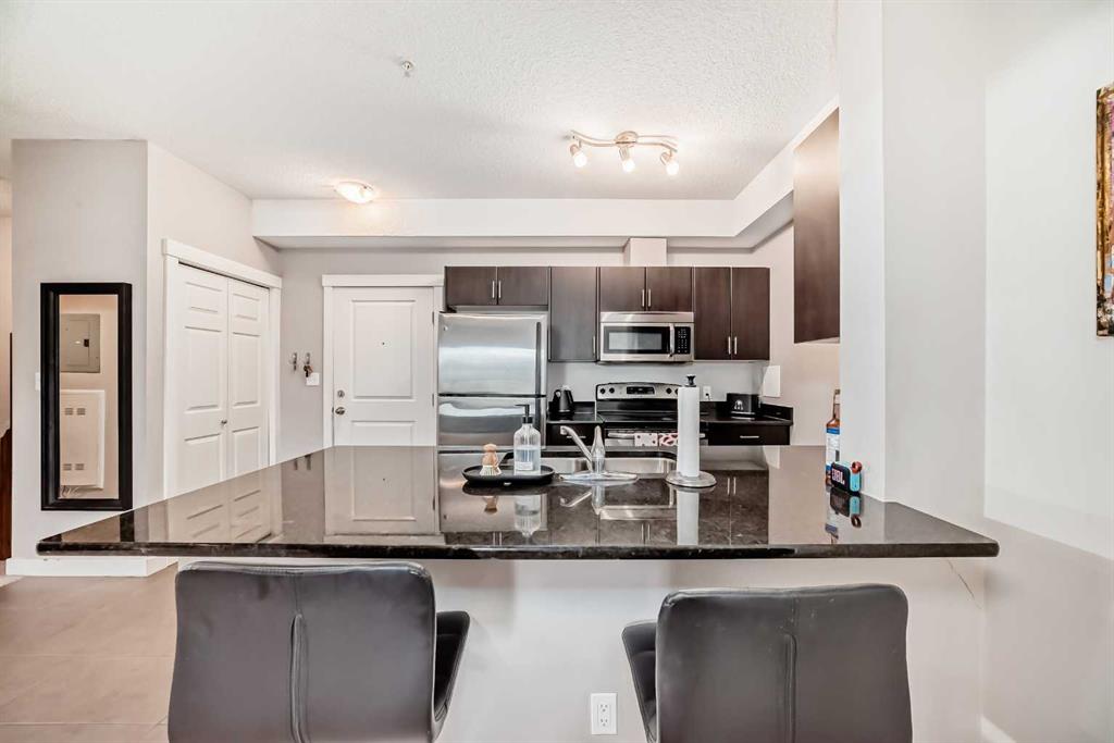 Step inside this stylish condo and immediately feel at home. The modern kitchen features dark cabinetry, sleek granite countertops, and stainless steel appliances, complete with a convenient island that doubles as extra prep space or casual seating. The open-concept layout flows seamlessly into the living room, where large windows fill the space with natural light and frame views of the greenery outside.