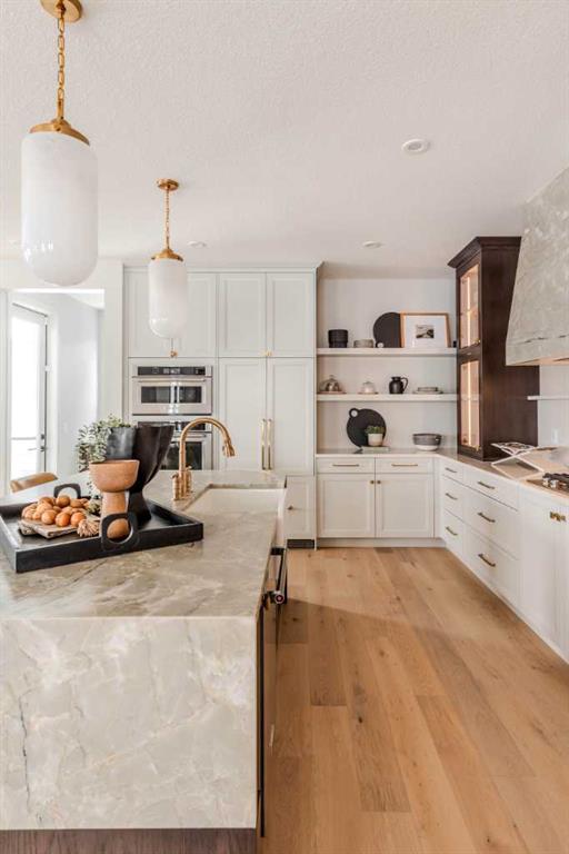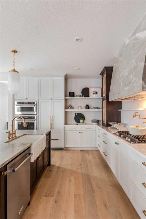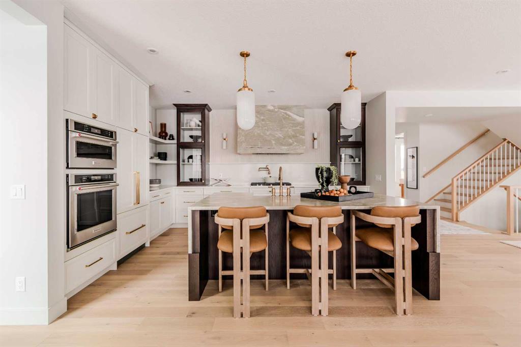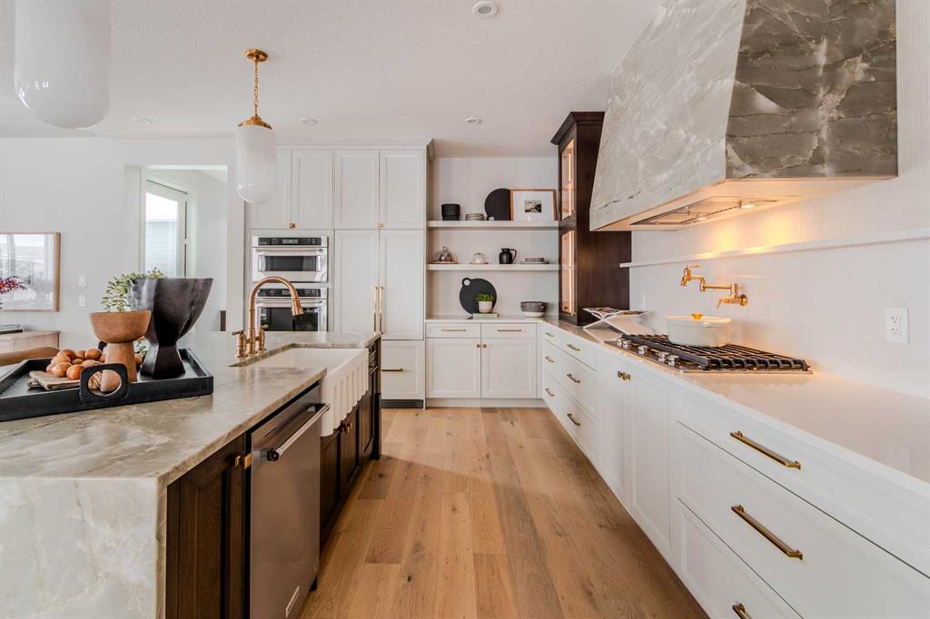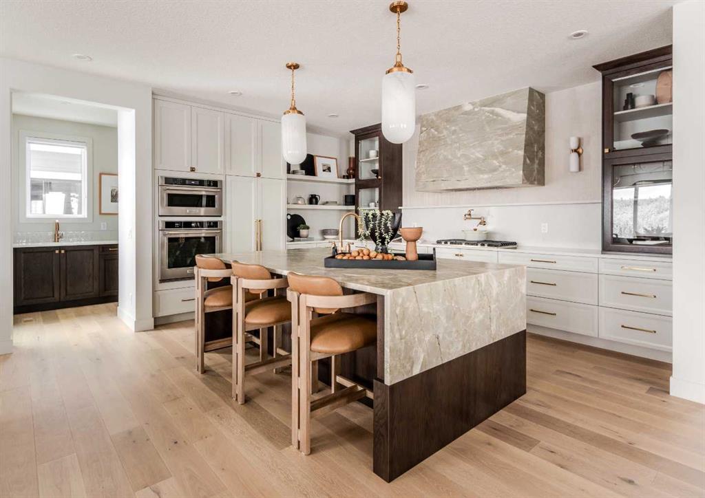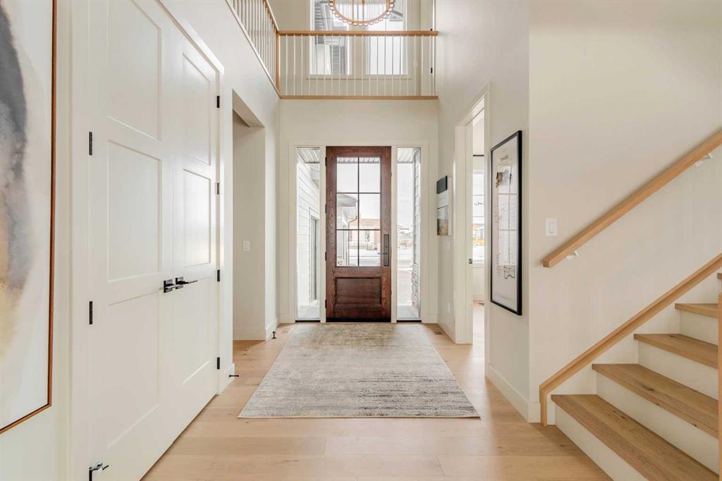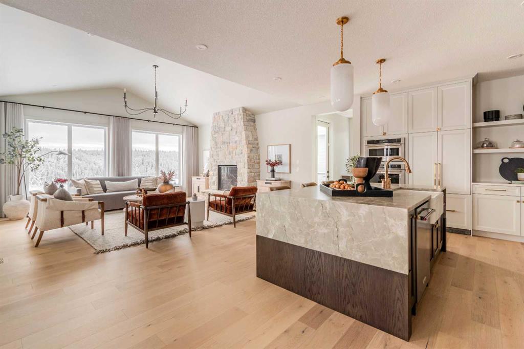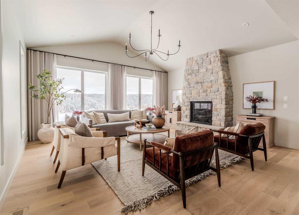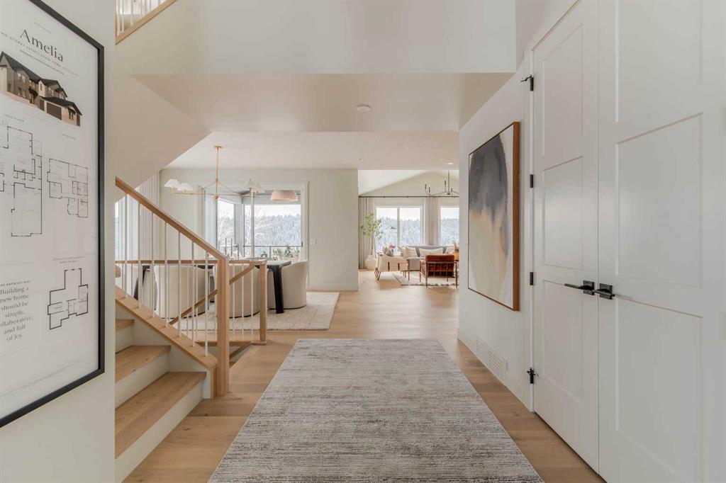 Welcome to 229 Rowmont Drive NW. This Baywest Showhome is now available for possession in time for Christmas, however customers can also build similar custom homes on available view lots. Set on a rare lot backing onto protected greenspace, this brand-new luxury estate by Baywest Homes captures sweeping views of the Bow River Valley and Bearspaw Reservoir. With a premium south-exposed design, this home offers over 4,800 sq. ft. of exquisitely finished living space and sides directly onto Rockland Park’s Osprey playground. Step into a grand foyer with soaring ceilings open to above, setting the tone for the home’s thoughtful design and refined style. The chef-inspired kitchen showcases striking two-tone cabinetry, a premium appliance package, and a walk-through mudroom with access to both a full storage pantry and a dedicated butler’s pantry. A front-facing main-floor office provides the perfect work-from-home retreat, while the bright open-concept great room captures endless valley views. The spacious dining area flows seamlessly to a large, covered deck, designed for year-round entertaining. Upstairs, the south-facing primary suite is a true sanctuary with a spa-like ensuite featuring a freestanding soaker tub and oversized tiled shower, and an expansive walk-in closet. Three additional bedrooms, plus a flexible loft and laundry room complete the upper level. The fully developed basement level offers exceptional versatility, featuring a sunlit recreation area, games room, bathroom, and a fifth bedroom. Wide-plank hardwood, curated tile selections, and warm neutral tones create an atmosphere of relaxed sophistication throughout. The oversized side-drive triple garage provides ample room for vehicles, storage, or a workshop space. Additional highlights include full landscaping, air conditioning, and custom window coverings—all included in the price. Furnishings may also be negotiable. Nestled in Rockland Park, one of northwest Calgary’s most coveted new communities, residents will enjoy future schools, scenic pathways, and exclusive access to a private clubhouse with pool. With unmatched views and meticulous craftsmanship, this home defines estate living on the Bow.