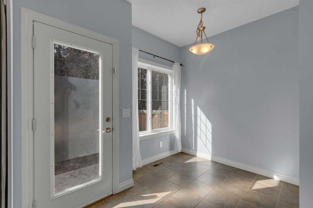 END UNIT! 3 bedrooms, 1.5 bathrooms, 2 PARKING STALLS & LOW FEES! With freshly cleaned carpets, a new coat of paint, a perfect layout and a cute backyard this home has it all! Stepping inside the front entrance you are welcomed by a bright and airy open-concept layout with modern finishings/colours, 9 foot ceilings and huge windows that fill the home with natural light throughout the day. The living area has plenty of space for big comfy furniture to watch movies or relax in front of the fireplace. The U-shaped kitchen features ample counter space and seating for guests, plenty of cabinetry and a new dishwasher. Adjacent to the kitchen is a dining area with a lovely window that overlooks the south-facing backyard, this nook is the coziest spot for morning coffee! This area also leads to a fenced backyard with a large mature tree that provides privacy to enjoy summer evenings on the (concrete) patio. The main floor is completed with a 2 piece powder room and a coat closet at the front door. On the south side of the second level you will find a huge primary bedroom with an awesome flex area that would make a perfect reading nook or glam station. This private retreat overlooks the backyard, boasts a big walk-in closet, and features a cheater ensuite door to a four piece bathroom with deep soaker tub. The second level is completed by two more bedrooms on the north side of the home (nicely separated from the primary bedroom) and large linen closet. The basement houses a newer washer and dryer, and features a big window and bathroom rough-in for future development. Right outside the door are two parking stalls with plug-in and plenty of visitor parking. This home is a 5 minute walk to the elementary school and a 3 minute drive to all amenities such as health services, rec center/pool, arena, groceries, hardware stores and retail. BONUS: hot water tank replaced in 2024.