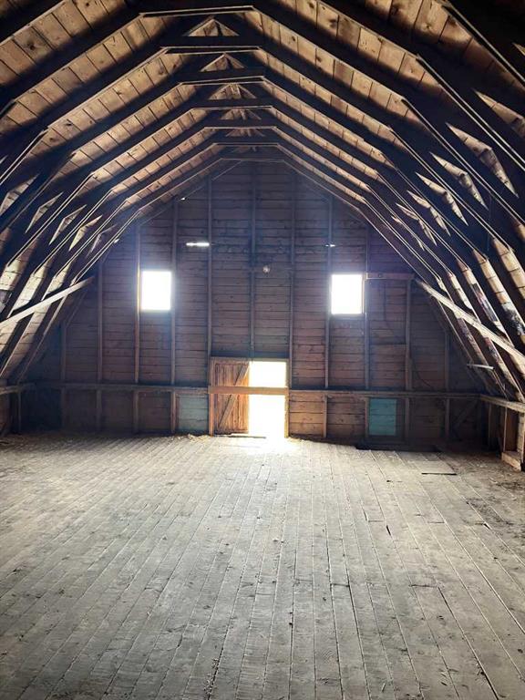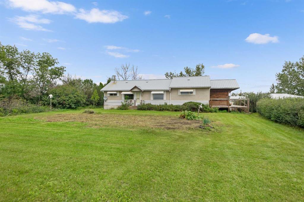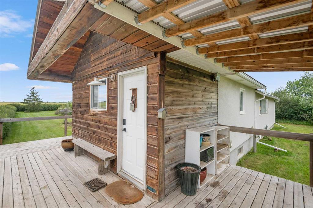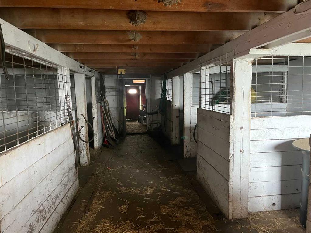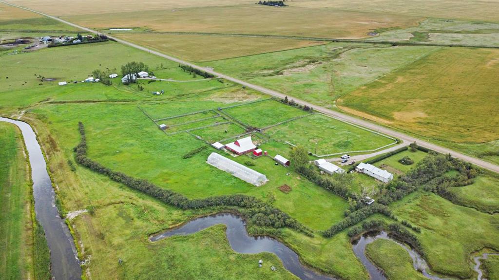 Set on 10.38 acres just 15 minutes from Calgary city limits, this property offers the perfect blend of rural tranquility and urban accessibility. Bordering a water canal and creek on the west and north sides, the land is framed by mature trees that create a natural windbreak and enhance the sense of privacy. Expansive lawns, lush gardens and scenic walking paths along the canal provide endless opportunities for enjoying the outdoors, while winter months bring the simple pleasure of skating on the creek. A standout feature is the classic red barn, designed for both function and charm. The main level includes a spacious storage and workshop area, six animal stalls, a large straw storage space and automatic waterers connected to the property’s well water supply. Upstairs, the loft offers a warm, wood-lined setting ideal for barn dances, gatherings or creative use. Multiple fenced pens are ready for horses or other livestock, making this property equally suited to equestrian pursuits, hobby farming or a blend of both. Five garage bays across various outbuildings include a triple garage that is insulated and equipped with a new furnace. An upgraded electrical panel on the main power pole enhances power capacity and reliability for the entire property. Recent improvements also include gas lines moved for efficiency and a brand-new greenhouse, perfect for year-round gardening. The wrap-around deck invites you to relax, barbecue and take in the sweeping prairie views. Stepping inside, the home embraces a warm farmhouse style that instantly feels welcoming. A generous mudroom keeps boots, jackets and seasonal gear neatly organized, making daily life more functional. The living room opens seamlessly to the sitting area, where a wood-burning stove radiates warmth and creates a cozy focal point for gatherings. In the kitchen, rich wood cabinetry adds rustic charm, while a pantry offers extra storage for dry goods and kitchen essentials. A peninsula with a clever fold-up table provides the perfect spot for quick breakfasts, early morning coffee or extra prep space, folding down again when not in use. A window above the sink frames a tranquil view of the countryside, turning even dishwashing into a moment of calm. The dining area is designed for connection, with an oversized window that captures breathtaking prairie views and floods the room with natural light. A new hot water tank adds peace of mind to the home’s everyday comfort. Two large bedrooms provide restful retreats, each offering ample space for personal touches. The updated full bathroom serves the main floor with ease and convenience. Main level laundry adds everyday practicality, keeping chores close at hand. Downstairs, a spacious rec room with wood paneling and exposed beams sets the stage for family movie and games nights. This is more than a home, it’s a lifestyle, offering space, privacy and the flexibility to live, work and play in the beauty of the Alberta countryside while staying close to city conveniences!