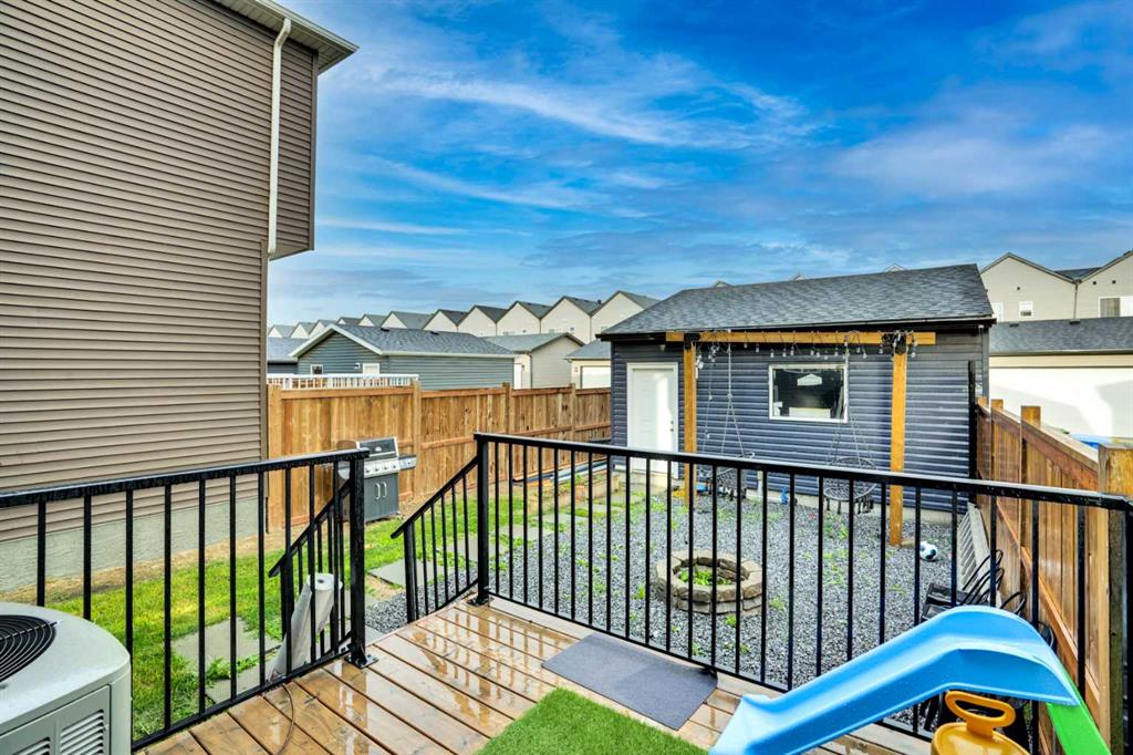 Welcome to this impeccably maintained 3-bedroom detached home in the highly sought-after community of Cornerstone, offering the perfect combination of modern style, functionality, and comfort. As a former SHOW HOME, this property showcases premium finishes and thoughtful upgrades throughout. At the entrance to the main floor, the living area features an open-concept layout with abundant natural light, designer fixtures, and a seamless flow between the living, dining, and kitchen spaces—ideal for both everyday living and entertaining. Venturing upstairs, this house has 3 bedrooms and 2 full bathrooms and a laundry room. Primary bedroom has its own walk-in closet and a 4pc EnSite. The other 2 bedrooms share a common bathroom. The fully developed basement featuring an ILLEGAL SUITE, has been designed in a versatile studio-style configuration with a PRIVATE REAR ENTRY, complete with its own kitchen, full washroom, and open living/sleeping area. Step outside to enjoy a beautifully landscaped backyard featuring a DECK, FIRE PIT, and CENTRAL AIR CONDITIONER for year-round comfort. Included in the sale is ALL FURNITURE and DECOR exactly as displayed—from FURNITURE, COUCHES to BEDS, ARTWORK, and ACCESSORIES—making this a truly turnkey move-in opportunity. (Personal belongings not included.) This is more than a home—it’s a lifestyle, ready for you from day one.