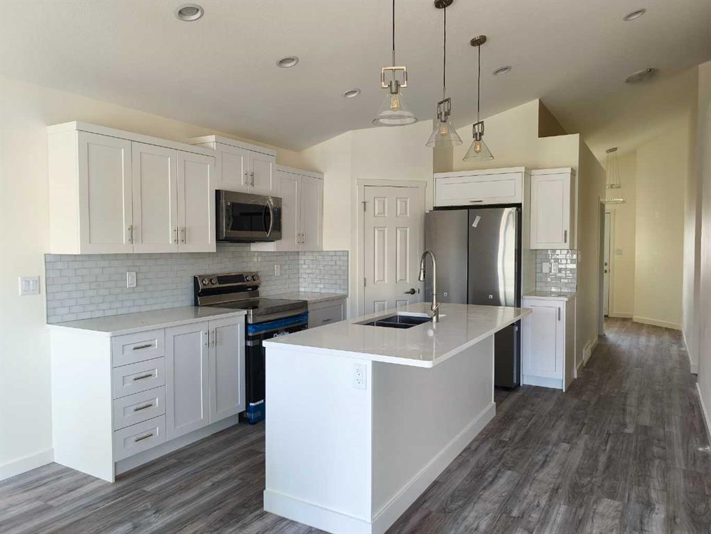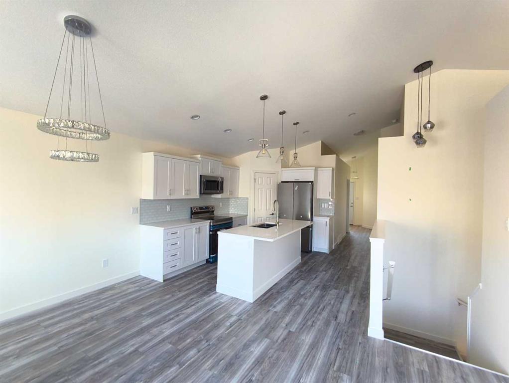 This thoughtfully designed home combines modern style, comfort, and functionality. The main floor features soaring vaulted ceilings, an open and sun-filled layout, quartz counters in the kitchen, stainless steel appliances and 3 bedrooms. The spacious primary suite offers a luxurious 5-piece ensuite with double vanities, tub, 5-ft shower, and walk-in closet. Central A/C and laminate flooring at both levels.