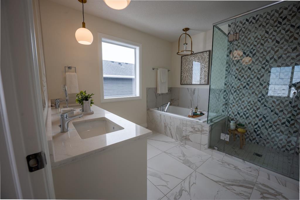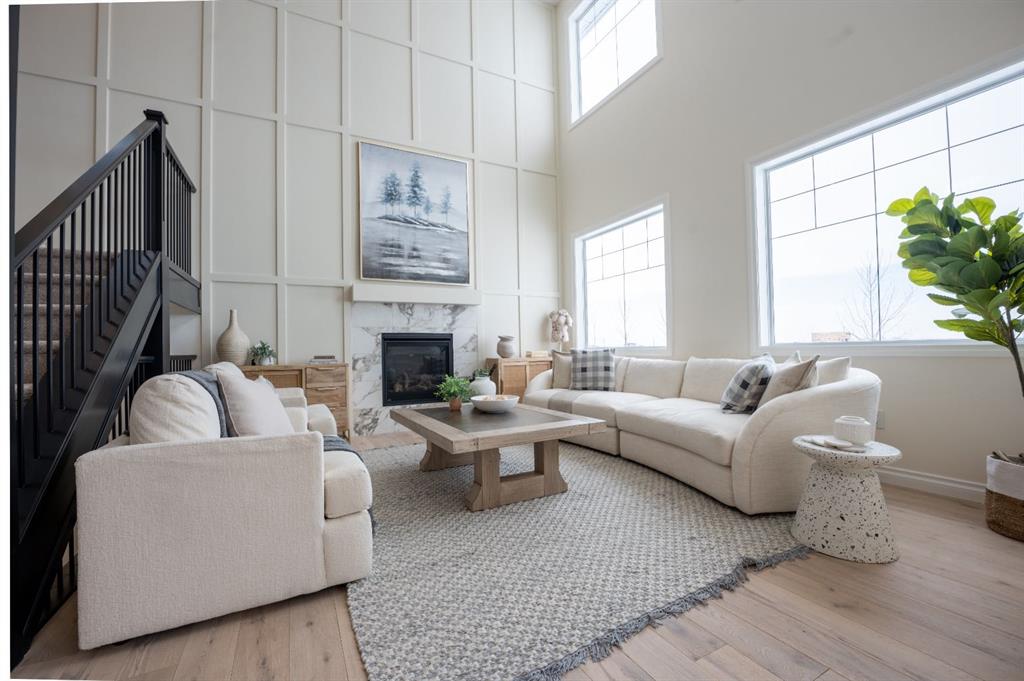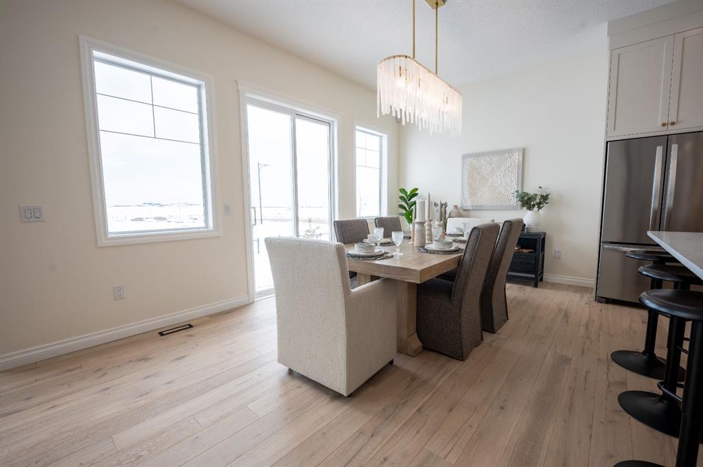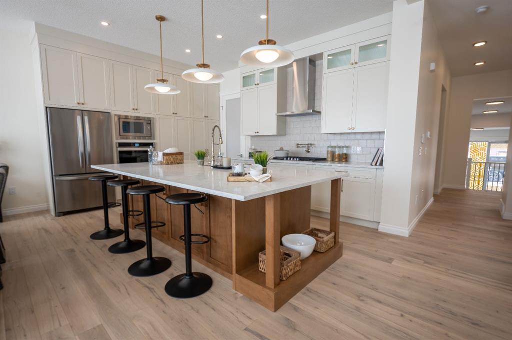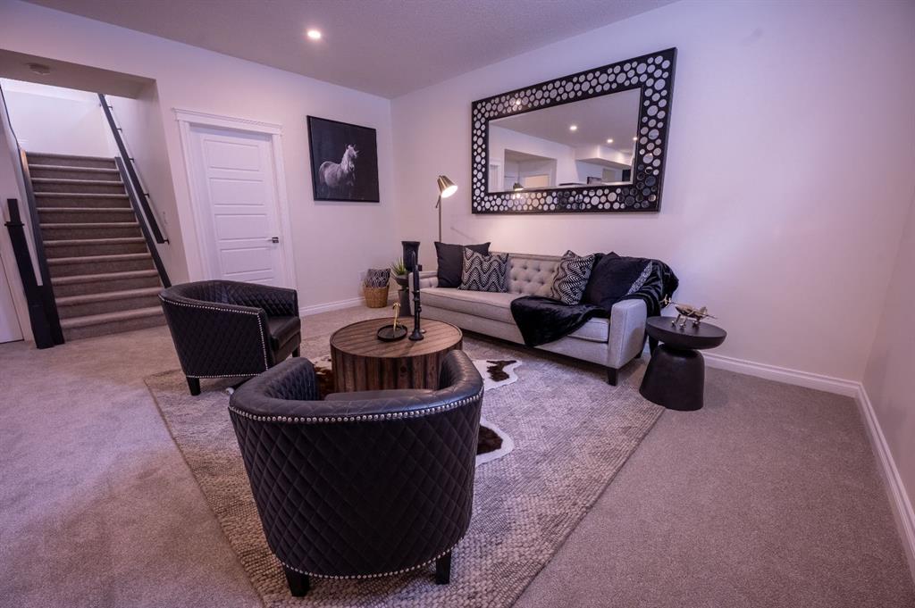 Every element of this stunning show home is thoughtfully designed, offering a perfect blend of elegance, high-end finishes, and practical living — no detail has been overlooked. This executive residence is situated on a desirable lot in the sought-after community of Chelsea, Chestermere. From the moment you arrive, you’ll be captivated by the soaring vaulted foyer, flooded with natural light from a wall of oversized windows. Beautiful hardwood flooring flows throughout the main level, while central A/C ensures year-round comfort. Offering a total of 3965 sq ft of exquisitely finished living space, this home is designed to impress. The open-concept main floor is both functional and inviting, featuring a private den just off the entrance — perfect for a home office or guest bedroom — paired with a 2-piece bath for added convenience. The expansive living and dining areas are ideal for gatherings, highlighted by a stunning fireplace with custom built-ins. At the heart of the home is a chef-inspired kitchen featuring two-tone cabinetry, quartz countertops, a gas cooktop, and a walk-through pantry leading to a fully outfitted spice kitchen, offering added space for meal prep and storage. Upstairs, the luxurious primary suite offers a true retreat with a spa-like 5-piece ensuite featuring dual sinks, an oversized glass shower, and a deep soaker tub — the perfect place to unwind — plus a generous walk-in closet. The upper level is complete with a large bonus room, three additional bedrooms, a 3-piece bath, and a 5-piece Jack & Jill bathroom, making this the ideal family-friendly layout. The finished basement offers two bed rooms , larg living room and full bathroom,Additional upgrades include a triple attached garage, air conditioning, hot water on demand, stylish glass railings, upgraded appliances, and much more — please inquire for the full list of features. A home that perfectly balances luxury, comfort, and everyday functionality — \"The builder is ready to welcome you home. Just minutes from Calgary, Chelsea is Chestermere’s newest lakeside community, offering scenic pathways, parks, playgrounds, and easy access to Chestermere Lake. With nearby schools, shopping, and amenities, Chelsea is the perfect blend of nature, convenience, and family-friendly living.
