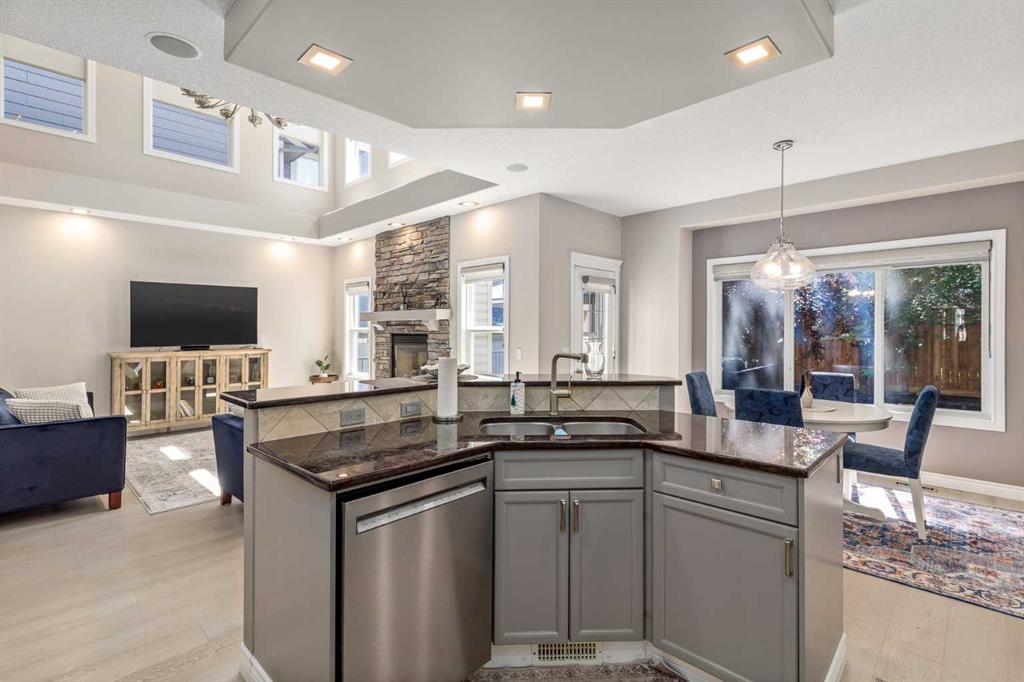 Indulge yourself in this extraordinary opportunity in the highly desirable SW Calgary community of Crestmont. With 3,200+ sq. ft. of carefully designed living space spread over three levels, 4 bedrooms, 3.5 baths and a pivotal location you cannot let this one slip away. A wide front drive and heated, double attached garage gives you ample parking for four vehicles. A NW front-facing railed porch is your calm spot at day’s end. The brightly lit foyer with sidelights welcomes you in and straight ahead, the open concept main floor features ash, wide-plank hardwood flooring and muted colors throughout. The dining room has an elegant tray ceiling and is perfect for more formal gatherings. A walk-through hall with butler’s pantry leads to a very impressive high-ceilinged kitchen boasting modern white cabinetry, gleaming granite countertops, tiled backsplash, a breakfast bar/ island with under counter double sinks and stainless appliances. The adjacent breakfast nook showcases a beautiful array of windows and provides access to the deck. The living room is breathtaking with tall ceilings and views to the second level. The large stone-surround gas fireplace makes for snug winter evenings. A spare room could serve as a home office and a well-appointed laundry room with tons of storage and a 2-pc. bath wrap up this level. The second level repeats with the light, wide-plank hardwood flooring and lots of natural light. A bonus room at the top of the stairs would be excellent as a family room or play area for the kids. The extra roomy primary bedroom is your private sanctuary with walk-through 5-pc. ensuite (double sinks, soaker tub) leading to a sizable walk-in closet. Two additional bedrooms share a second 5-pc. bath. The basement level is fully finished with carpeting, a rec room, a 4th bedroom, 3-pc. bath and utility room. Moving outside, the rear deck is equipped with a BBQ gas line. The yard is fenced, landscaped, and well treed. On the SW edge of the City and close to 16th Avenue and Stoney Trail, access to Alberta’s beautiful natural areas is never far away. Proximity also to Calaway Park, Winsport, Calgary Olympic Park, Artists View Park (hiking and biking trails), shopping at Calgary Farmers’ Market, Crest Lake, schools, churches, and playgrounds. This home is tastefully decorated, has been impeccably maintained and offers so many pluses – skylights, wired for sound, 2 central air conditioners, 2 furnaces, water softener, central vac – details that increase comfort and value and make it worthy of your attention. Call for your private viewing today.