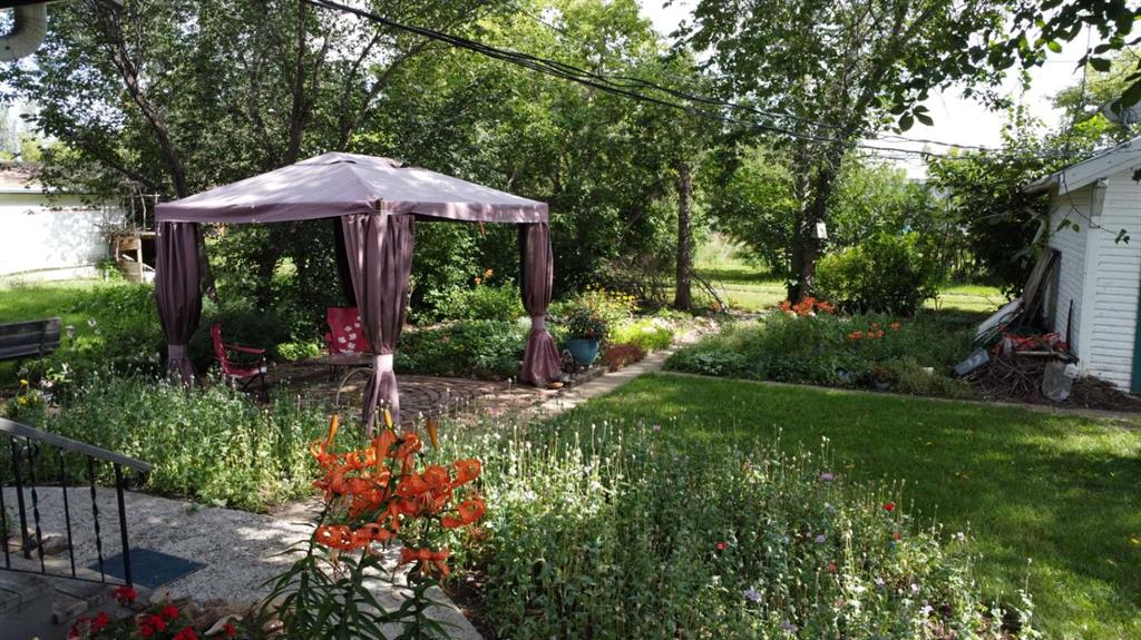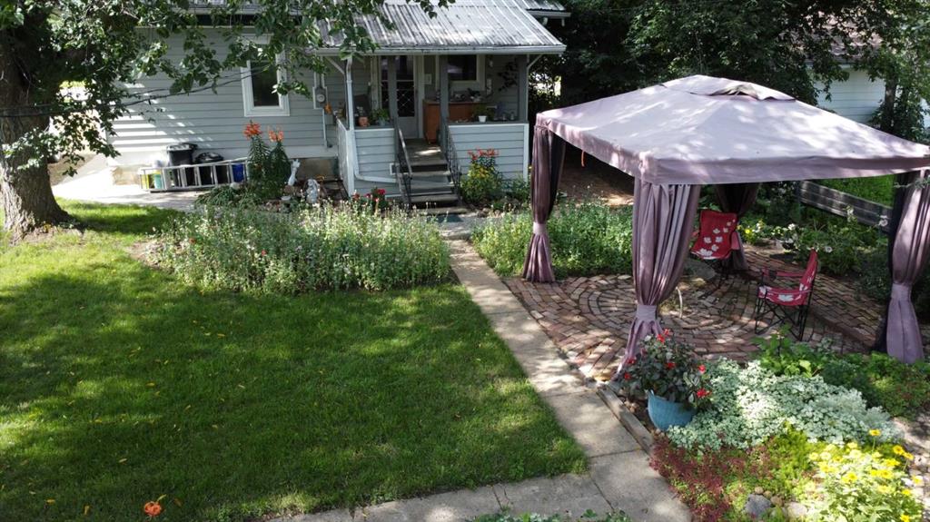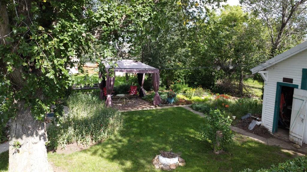 Step back in time with this beautifully maintained 1917 character home, full of warmth, history, and unique details. From the moment you enter, you’ll appreciate the craftsmanship and charm that has been thoughtfully preserved while enjoying the comfort of modern updates. Inside, stunning hardwood floors set the stage for timeless character features, including classic parlour doors that open from the living room into the dining room, elegant plate rails, and a cozy electric fireplace. A built-in bench seat with hidden storage adds both charm and practicality. The spacious kitchen offers plenty of room for family gatherings and everyday living, with windows throughout the home filling the space with natural light. The main floor features two generous bedrooms, including a primary suite with a walk-in closet, and a beautifully updated 4-piece bathroom. Numerous upgrades have already been completed for your peace of mind, including a metal roof, newer windows, insulation, wiring, plumbing, and furnace. Outside is just as inviting. The landscaped yard is a gardener’s dream with established perennials, succulents, and a covered gazebo area with a lovely rock/brick inlay—perfect for relaxing or entertaining. The garage has been converted into storage, while the large driveway provides ample space for several vehicles, including RV parking. Delia is a welcoming small town of about 150 residents, offering the perfect blend of peace and convenience. With a brand-new K–12 school, plus essentials such as a bank, post office, store, hair salon, and restaurant, you’ll enjoy the ease of small-town living while being only 30 minutes from Drumheller and 25 minutes from Hanna. Don’t miss this rare opportunity to own a piece of history with modern comforts. Call your Realtor today to arrange your private showing!