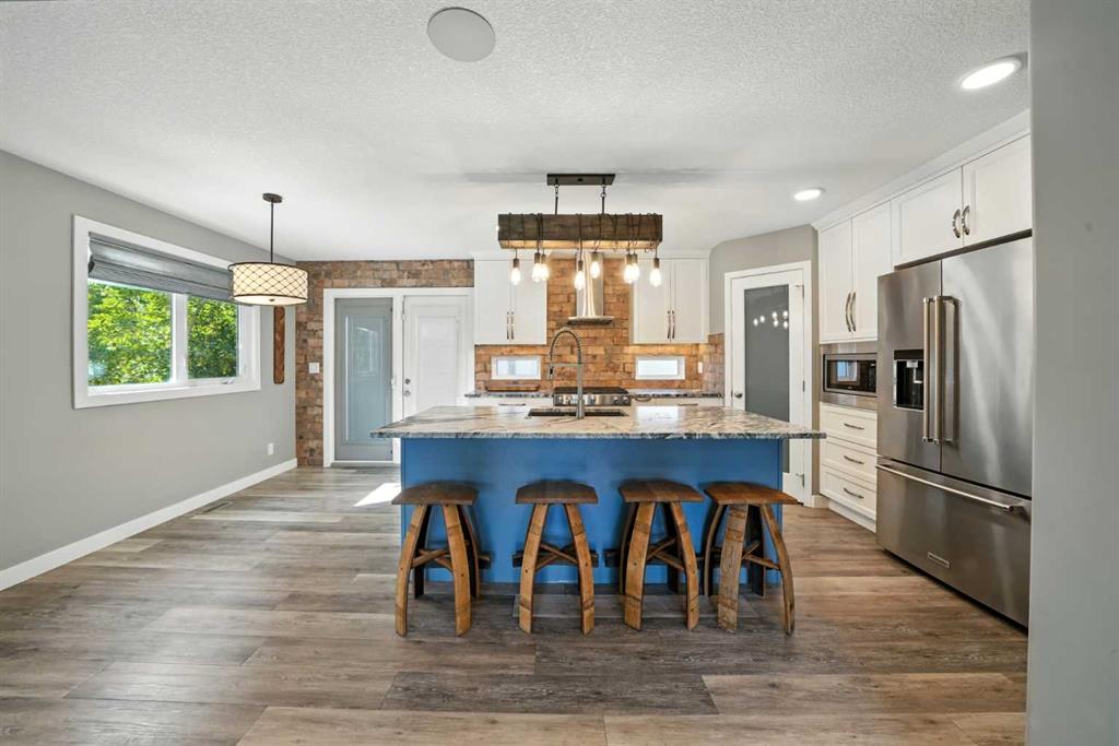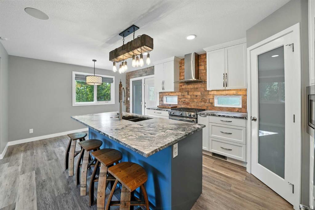 A completely renovated 2-storey on a close in the desirable mature Westpark Estates neighborhood. The front entryway greets you to the living room, which is flooded with natural light through the large front vinyl window. Two-toned kitchen cabinets are complemented by a large eating bar island, leathered granite counters, full tile brick backsplash, a gas stove, a Silgranite sink, stainless steel appliances, pot/pan drawers, a corner pantry, a garburator & pull-out cabinets including a spice drawer. The dining area has patio doors with built-in blinds to the back deck. Relax in the sunken living room that features a gas fireplace with a white brick surround. The home boasts a main floor laundry. Upstairs has a king-sized primary bedroom with a large walk-in closet complete with custom shelving/drawers, a makeup area & a 5-piece bathroom with a double faucet sink, a window, a tiled jet tub, a separate glass/Italian marble steam shower & a water closet. There is a second bedroom upstairs & a 4-piece tiled bathroom with quartz countertops. Follow the wrought iron railing stairs down to the basement that has 3 bedrooms (2 with walk-in closets), a 5-piece bathroom with double sinks, a makeup vanity, and quartz countertops. The large pie-shaped lot features a 2-tier deck with a hot tub, & rv parking. The home was completely renovated in 2019, including but not limited to: a new exterior, windows, the interior was brought back to the studs with all new finishings/fixtures, a new furnace, hot water on demand. The best of both worlds with the trendy newer renovations in a mature location just steps away from the trail system and Red Deer river! The home has AC, an HRV system and a heated garage.