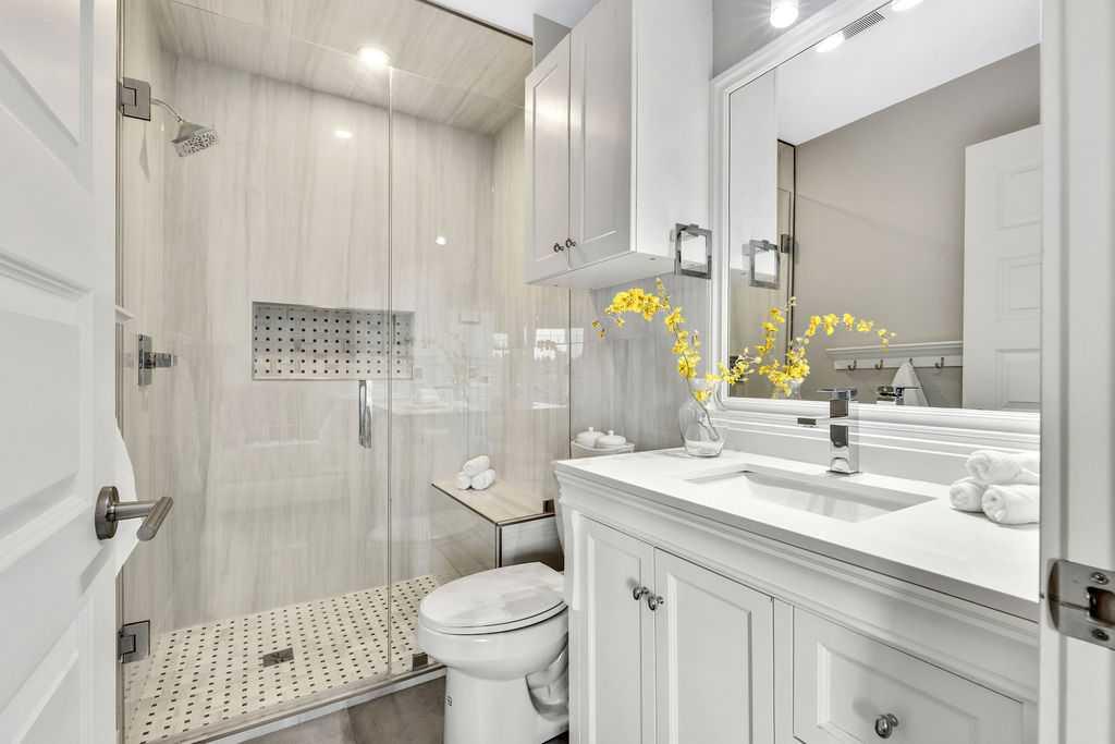 Renovations include an updated primary bathroom and new luxury vinyl plank flooring on the main level, installed over the existing hardwood for a clean and modern look.