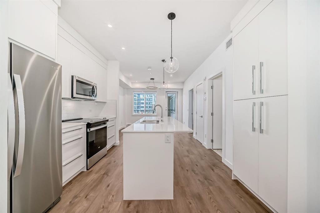 Discover your dream home in this 2-Bedroom, 1-Bathroom with 1 Titled Underground Parking Stall, perfectly situated in the vibrant and growing community of Wolf Willow. Enjoy the convenience of nearby playgrounds, scenic pathways, golf, and shopping—all within a dynamic and welcoming neighborhood. This beautiful home offers an exceptional living experience with an open-concept floor plan and an oversized west-facing balcony that floods the space with natural light —perfect for outdoor entertaining and relaxation. Inside, you\'ll find the highest quality fit and finish, including vinyl plank flooring throughout the living areas and high ceilings that enhance the spacious feel. The kitchen is a chef\'s delight, boasting full-height cabinetry with soft-close doors and drawers, a sleek stainless steel appliance package, and a pantry. The eat-up bar, adorned with elegant quartz countertops, creates the perfect spot for casual dining and entertaining. The primary bedroom is a true retreat, featuring a spacious walk-in closet. One additional bedroom and a well-appointed 4-piece main bathroom complete this thoughtfully designed layout, ensuring comfort for all. Beyond your door, indulge in a range of amenities designed to enhance your lifestyle. Pamper your furry friends at the pet spa, stay active in the well-equipped gym, and enjoy gatherings in the owners\' lounge. Plus, convenient bike storage makes it easy to explore the beautiful surroundings. This bright and airy home is move-in ready, offering you the chance to embrace the TRUMAN lifestyle and live better than ever!