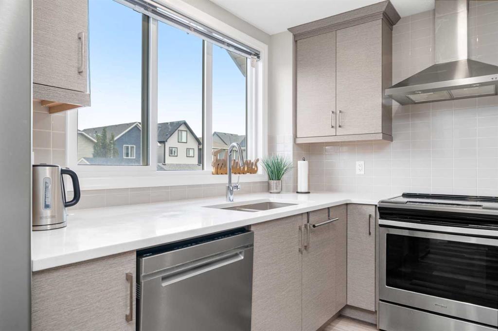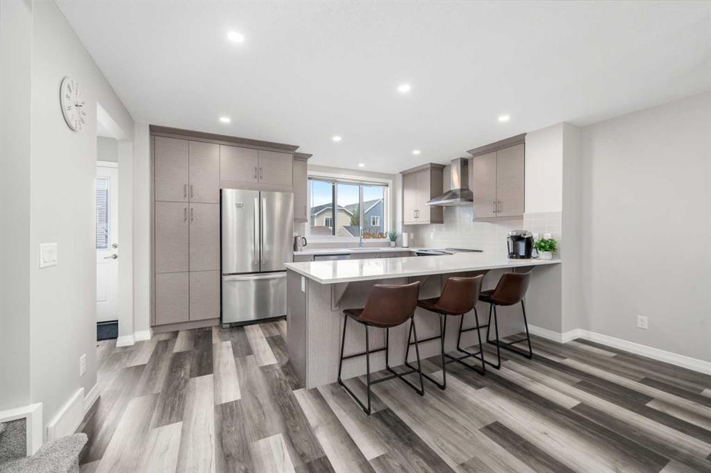 Welcome to MAHOGANY, one of Calgary’s most celebrated lake communities, where exceptional amenities meet everyday convenience. This beautifully maintained JAYMAN SONATA floor plan combines thoughtful upgrades, SOLAR PANELS, an ILLEGAL SUITE and lush landscaping with a location just minutes to the MAHOGANY LAKE, BEACH CLUB and the community’s extensive WETLANDS pathway system. A charming exterior with meticulous landscaping sets the tone. Step inside to SOARING CEILINGS in the living room, where oversized south-facing windows flood the space with natural light. Durable LUXURY VINYL PLANK flooring flows seamlessly throughout. A discreetly tucked away 2-piece powder room enhances everyday function. The dining area with DESIGNER LIGHTING overlooks the living room, creating an open, connected atmosphere that is ideal for entertaining. The kitchen overlooking the backyard is designed for both style and practicality with STAINLESS STEEL APPLIANCES, FULL-HEIGHT CABINETRY, a built-in wall pantry and a peninsula island that invites casual meals and peaceful morning coffees. Upstairs, LUXURY VINYL PLANK flooring continues throughout for a clean, cohesive finish. The primary suite overlooks the backyard and features a large WALK-IN CLOSET and a luxurious 5-PIECE ENSUITE with a dual vanity, no more sharing! A convenient LAUNDRY CLOSET is located on this level along with an upgraded 3-piece main bath with stand-up shower and 2 additional bedrooms. The SUNSHINE BASEMENT is bright with tall ceilings and a SEPARATE ENTRANCE leading to a one-bedroom ILLEGAL SUITE. Complete with a full KITCHEN finished in STAINLESS STEEL APPLIANCES and QUARTZ COUNTERTOPS, 4-PIECE BATH, SEPARATE LAUNDRY and independent heating via a DUAL ZONE FURNACE, this level offers outstanding flexibility for extended family or guests. Outdoor living is equally impressive. Low-maintenance front landscaping is beautifully balanced with a rear grassy play area for kids and pets. The large rear deck, lush gardens and oversized SHED tucked beneath the deck provide ample storage and outdoor enjoyment. An OVERSIZED GARAGE offers secure parking and additional room for storage. Beyond the property, Mahogany offers a lifestyle unmatched in Calgary. Follow the pathway to serene WETLANDS or find yourself in just minutes at the MAHOGANY BEACH CLUB and 63-acre freshwater LAKE. Enjoy two private beaches, a splash park, fishing, tennis courts, an outdoor rink, winter bonfires and a year-round calendar of community activities. Everyday amenities including groceries, restaurants, coffee shops and retail are close at hand, while DEERFOOT and STONEY TRAIL make commuting a breeze. A stylish, well-cared-for home with a versatile layout in a vibrant lake community—this is the complete package!
