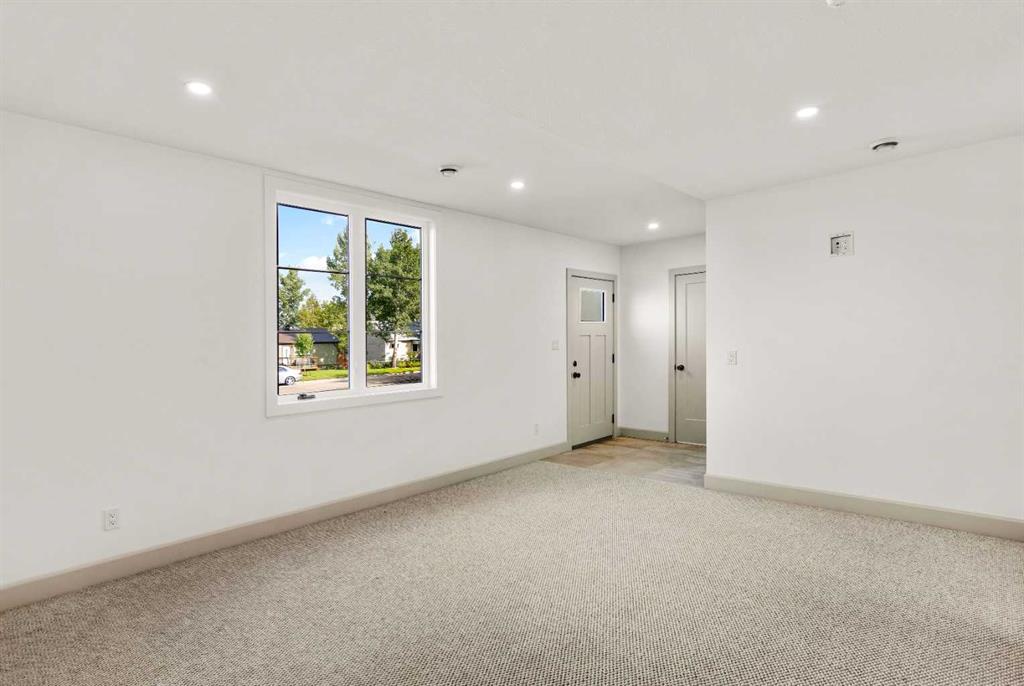 • Welcome to Edgerton Place, where comfort meets convenience in the heart of Rocky Mountain House. Nestled in the stunning foothills of the Rocky Mountains this executive new build townhome offers a modern, low-maintenance lifestyle in a prime central location—just steps from brand-new pickleball courts and within walking distance to local shops, restaurants, and everyday amenities. Step through the front door into a welcoming foyer adorned with almond slate tile, setting the tone for the refined finishes found throughout. This level features a spacious recreation room, ideal for a home office, fitness studio, or lounge, a heated-floor garage providing comfort year-round, and a stylish 2-piece bath completes this flexible space. Up stairs we go to the heart of the home, where rich walnut hardwood floors flow throughout a bright and airy open-concept kitchen, dining, and living area. At the center of the living room is a gas fireplace framed in floor-to-ceiling tumbled stone, accented by a dark wood mantel — a stunning focal point and cozy gathering space. To your left, the chef-inspired kitchen features: A generous quartz island with seating and creative storage, high-end modern appliances, blue artisan tile backsplash for a bold touch, a spacious pantry and a convenient 2-piece guest bath tucked away nearby. Step outside onto your balcony, perfect for outdoor dining, relaxing evenings, or entertaining guests. The upper level is home to two luxurious bedroom suites. The primary boasts a walk-in closet and an elegant, accessible 4-piece ensuite with a roll-in shower, combining style and thoughtful design. A well-placed laundry area leads to the second bedroom, which features its own 3-piece ensuite and walk-in closet — ideal for guests or family. With a sleek modern elevator system serving all three levels, this home offers both convenience and accessibility, making it ideal for a variety of lifestyles. This thoughtfully designed townhome combines style, functionality, and location—offering the best of Rocky Mountain House living. Whether you\'re downsizing, or investing, Edgerton Place offers unmatched value and convenience.