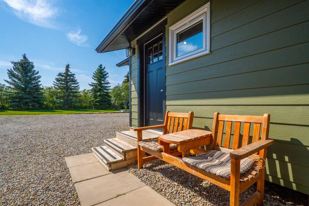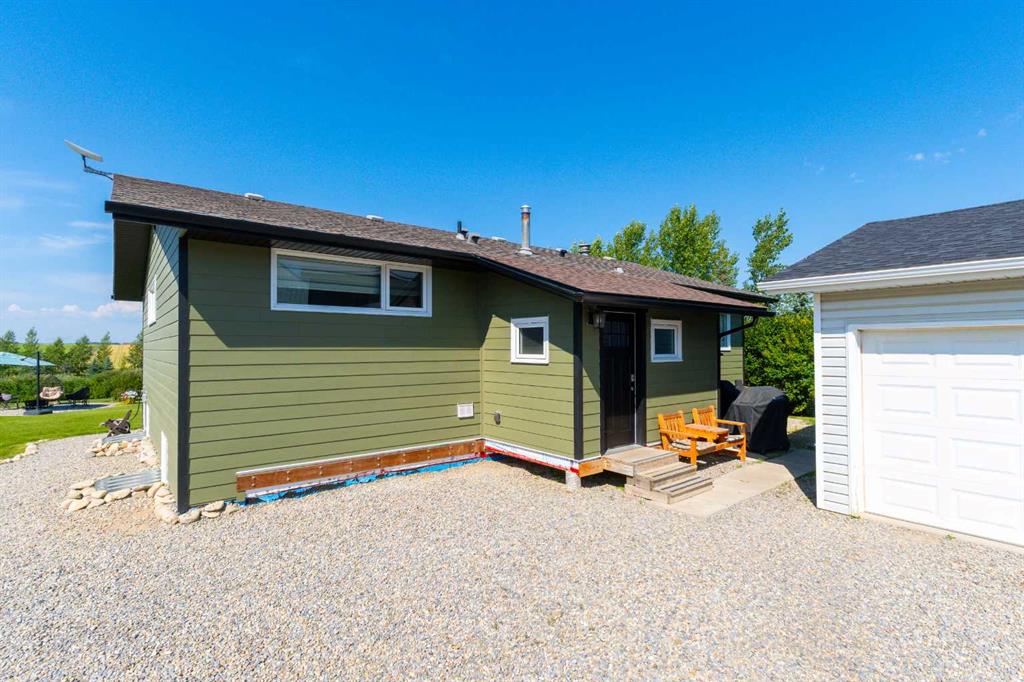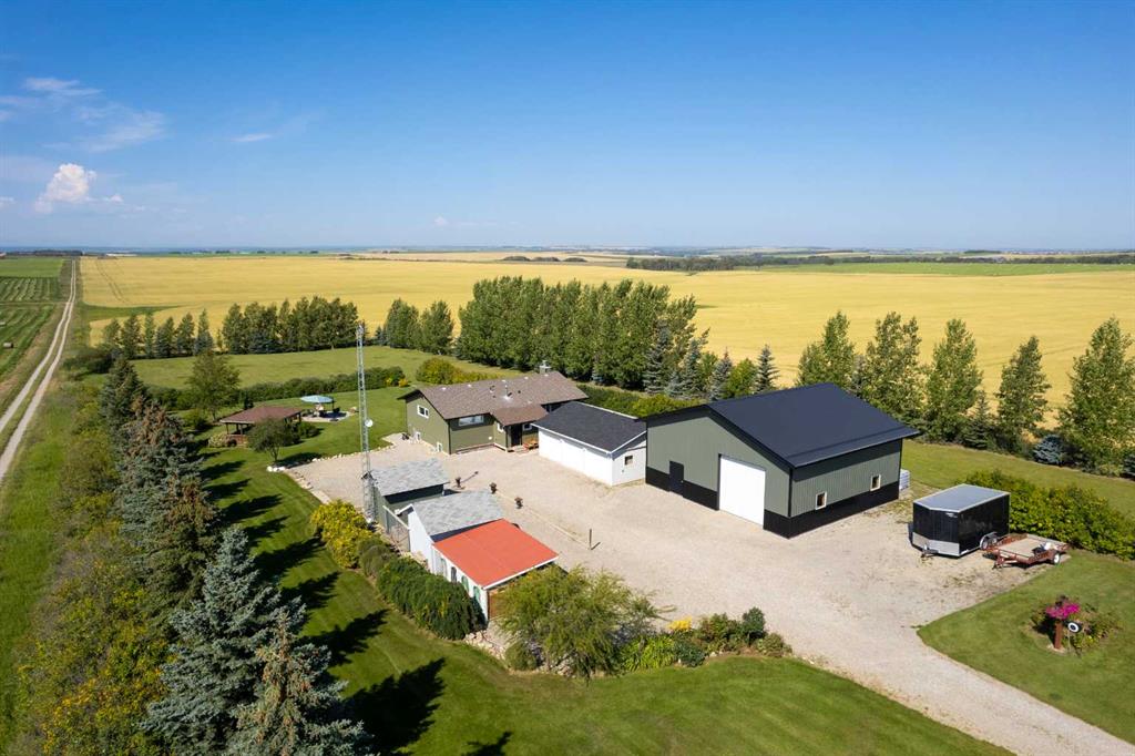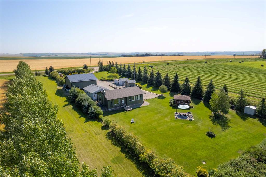 Discover this stunning acreage west of Carstairs/Crossfield with breathtaking MOUNTAIN VIEWS, where modern updates meet timeless charm. Built in 1961 and thoughtfully relocated onto a brand-new ICF foundation in 2021, this property boasts a bright, inviting interior filled with NATURAL LIGHT—highlighted by a modern white kitchen with ample counter space and an EAT-UP BAR, a spacious living room with a cozy electric fireplace and large windows(new windows) framing the scenic views, and a dining area with a patio door. The main floor has been BEAUTIFULLY RENOVATED, including a fresh bathroom with a double shower and tub in 2025, and offers two sizable bedrooms one with numerous windows & one with extra closet space, along with a versatile OFFICE/HOBBY ROOM. Downstairs, you\'ll find 9-foot ceilings, IN-FLOOR HEAT, a fun 3-piece bathroom, and laundry area, all designed for comfort. Outside, enjoy newer HARDIE BOARD SIDING, a new roof on the insulated and HEATED DETACHED TRIPLE GARAGE, a large 36x40 SHOP with a gravel floor, and a meticulously MANICURED YARD featuring MATURE TREE SHELTERBELTS, vibrant perennial beds, a GAZEBO, and a backup generator. This property combines spacious, modern living with exceptional curb appeal, one of the best mountain views and privacy—truly one of the nicest yards in the area & great location with easy access to Cochrane/Calgary/Hwy 2. ** Check out the Virtual tour link of this stunning property **