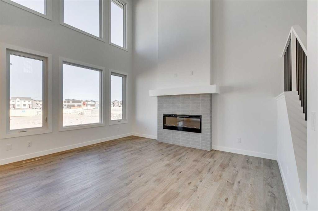 Featuring a full range of smart home technology, this home includes a programmable thermostat, ring camera doorbell, smart front door lock, smart and motion-activated switches—all seamlessly controlled via an Amazon Alexa touchscreen hub. Enjoy the convenience of a side entrance, main floor flex room, and walk-through pantry connecting to the executive kitchen with built-in stainless steel appliances, a gas cooktop and fridge with water and ice dispenser. The great room stuns with an open-to-below design and a striking electric fireplace with tile to mantle. Upstairs, the vaulted bonus room adds space and charm. Retreat to the luxurious 5-piece ensuite with a soaker tub and walk in shower with tiled walls. With quartz countertops in all baths, extra windows throughout, paint-grade railings with iron spindles, and gas line for BBQ, the Legacy is built for modern living. Photos are representative.