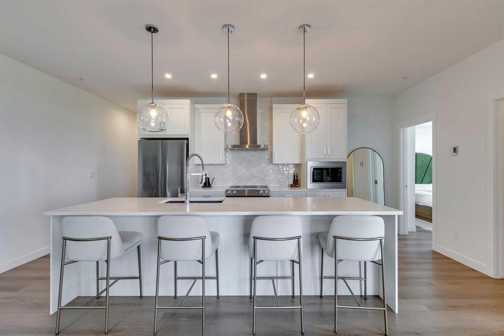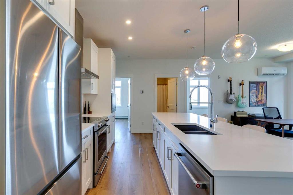 Welcome to 2216, 200 Seton Circle SE—a stylish and spacious corner unit in one of Calgary’s fastest-growing and most walkable neighbourhoods. With 915 sq ft of living space and over $30,000 in thoughtful upgrades at the time of build, this 2-bedroom condo is anything but standard. The kitchen is a true standout, with extended upper cabinets, a larger island, quartz countertops upgraded to a thicker 3cm slab, under-mount sink with upgraded faucet, premium KitchenAid appliance package, full-height tile backsplash, pot lights, and designer roller shades. Add in the luxury vinyl plank flooring that runs throughout, and you’ve got a space that looks sharp and lives easy. Both bathrooms were upgraded too, including an extended master vanity and a shower stall upgrade in place of the standard tub. And because Calgary summers can get hot, this condo comes with central A/C—something most units here don’t have. Being a corner unit, you’ll enjoy extra natural light and added privacy. The open layout makes the most of it, with a gas line on the balcony ready for your BBQ. The primary bedroom is generous, the second bedroom doubles nicely as a guest room or office, and everyday convenience comes with in-suite laundry, titled underground parking, and a private storage locker. Seton puts everything at your doorstep: the South Health Campus, YMCA, library, restaurants, shops, and more. Quick access to Deerfoot and Stoney Trail makes commuting simple, and the Seton HOA brings growing green spaces and community amenities to enjoy. This is a condo where everyday comfort meets smart design—and every upgrade was done right. For more information and photos, click the links below!