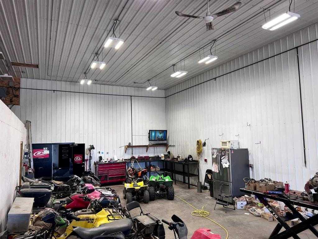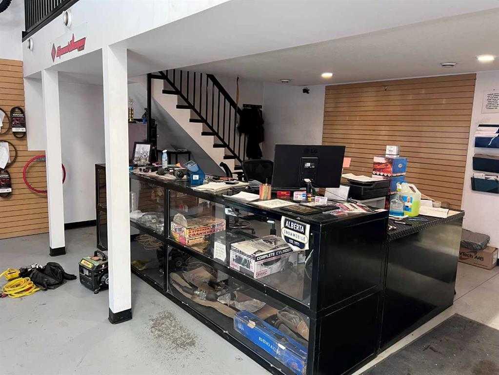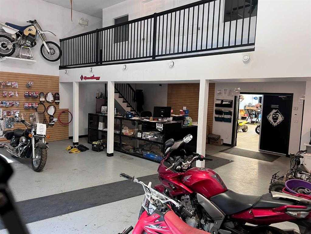 This industrial shop in Eckville, Alberta, is ideal for businesses looking to establish or expand operations. This 2880 sqft property is zoned C2, making it suitable for various commercial uses. The street front entrance leads to a 32x30 showroom with a reception desk, providing a practical space to welcome clients. Above the showroom, the mezzanine level includes two large offices and a storage room, offering ample administrative space. The shop area is a 32x60 work area with radiant heat, ensuring a comfortable working environment. At the rear of the property, two 14 ft overhead doors allow for easy access for large equipment and deliveries. Additional storage is available with a parts room that includes a mezzanine for extra space. Two main floor washrooms add to the convenience for both staff and customers. Previously used as a small engine repair shop, this property is suitable for similar businesses or those looking to expand existing operations. The location provides easy access to local amenities and transportation routes, making it convenient for both customers and suppliers. This industrial shop offers practical space and essential features for various business needs. Secure this opportunity in Eckville, Alberta, for your business growth. Owner is open to securing a two-year lease at fair market rates, making this an excellent option for those considering a short-term hold.
