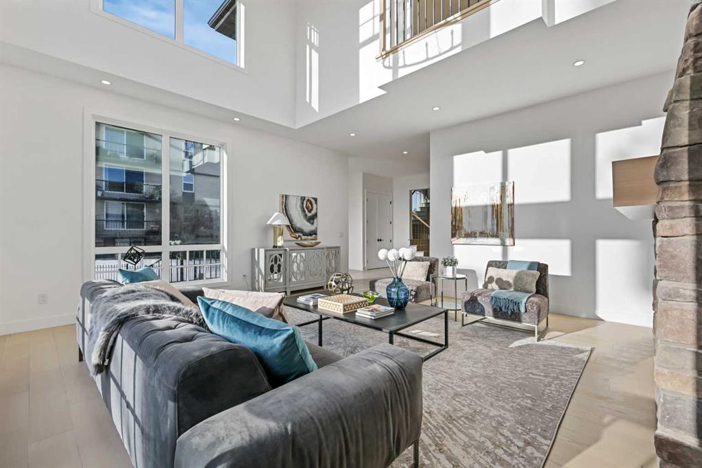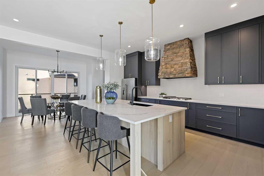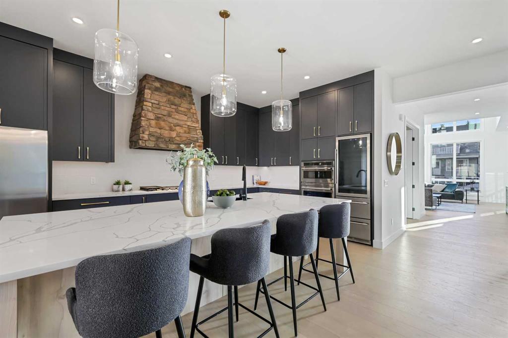 Welcome to 1516 22 Ave SW — a brand-new, luxurious infill offering panoramic Downtown views in the heart of Calgary’s highly sought-after Bankview neighborhood. With 3,465 square feet of meticulously crafted living space, this modern masterpiece boasts 4 spacious bedrooms, 4 designer bathrooms, and a stunning fusion of comfort, style, and sophistication. Step inside to soaring vaulted ceilings accented with rich wood tones, creating a warm and inviting atmosphere. The sun-drenched living room features custom built-ins, a dramatic stone gas fireplace, and expansive bay windows that frame the skyline. A versatile den or home office adds functional flexibility. The chef-inspired kitchen is a standout, equipped with premium GE Café appliances including a wall oven, gas cooktop, and microwave. Elegant quartz countertops, chic blue cabinetry, a generous island, and a handcrafted stone range hood are complemented by a crisp white tile backsplash. A dedicated wine cellar adds a touch of indulgence. The adjacent dining room is ideal for everyday meals or elegant entertaining. Upstairs, the serene primary suite offers a walk-in closet with custom built-ins and a luxurious 5-piece ensuite with a soaker tub, dual sinks, and a glass steam shower. Two additional bedrooms, each with their own walk-in closets, share a stylish 4-piece bathroom. Enjoy sweeping Downtown views from the private second-floor deck. The upper-level laundry room includes a washer, dryer, sink, and ample storage for added convenience. The fully developed walk-out basement is perfect for entertaining or relaxing, featuring a large family room, wet bar, guest bedroom, 3-piece bath, and generous storage. The oversized lot enhances the home’s spacious feel and natural flow. Perfectly positioned near 17th Avenue’s vibrant shops and restaurants, Marda Loop, Mount Royal University, and with easy access to Downtown, this extraordinary residence is more than a home — it’s a statement of modern luxury living.