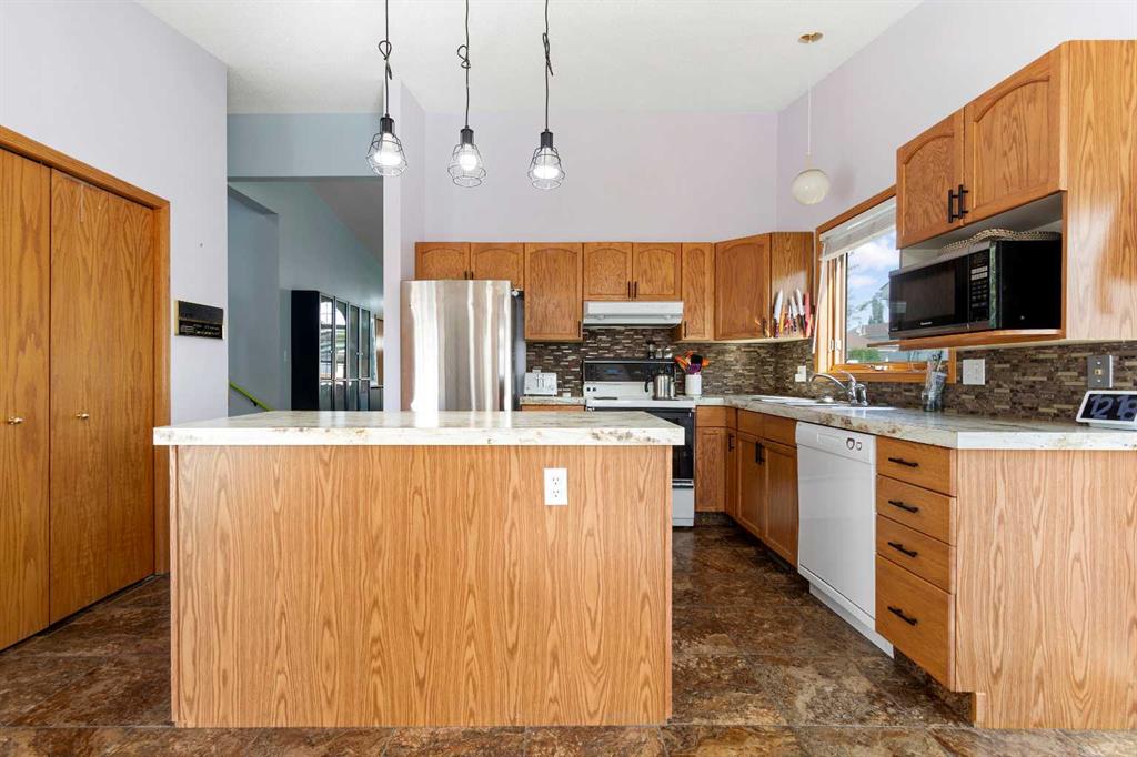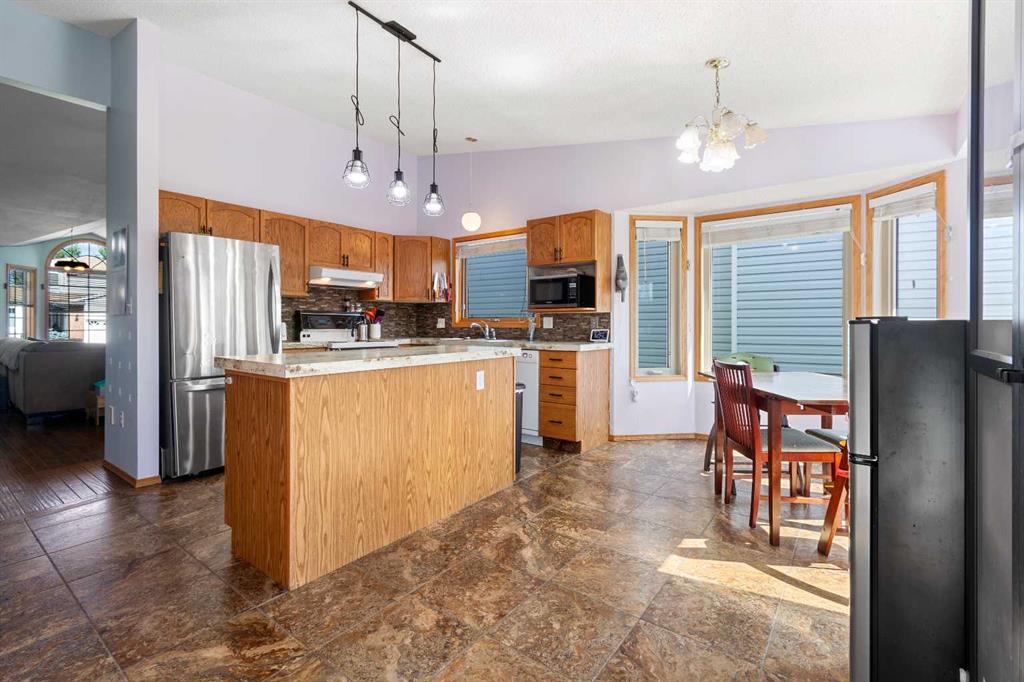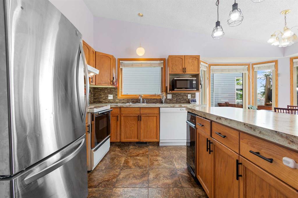 Tucked away in a quiet cul-de-sac in Crystal Heights, this home offers a welcoming blend of comfort and convenience. Surrounded by mature trees and just three houses from the neighbourhood playground, this 1990 four-level split is within easy walking distance of Holy Cross and I.V. Macklin schools, making it an ideal setting for families. With more than 2,600 sq.ft. of living space, there is room here for everyone to spread out and enjoy. The upper level hosts three generously sized bedrooms, including a primary suite with a walk-in closet and a three-piece ensuite. On the main floor, a bright family room with hardwood floors and large windows flows into a kitchen centred around a practical island, providing space for casual meals and gatherings. From the eat-in kitchen area, step outside to a fenced backyard oasis complete with a deck and pergola, framed by trees and established fruit shrubs, perfect for relaxing or entertaining. A half-level down, a second family room with a cozy wood-burning fireplace offers a warm retreat, accompanied by a fourth bedroom, another three-piece bathroom, the laundry room and direct access to the attached double garage. The fully developed basement adds even more versatility, featuring a wet bar, a gas fireplace, and open space currently used as a home gym and play area, along with a large storage room, mechanical room and crawl space. Hardwood run throughout most of the home, while updated vinyl plank adds durability to the lower levels. With most windows and the roof shingles replaced in recent years, this well-maintained property balances charm with practical updates. If you’re seeking a spacious home in a family-oriented neighbourhood with mature landscaping, multiple living areas and room to grow, 9055 106 Avenue could be just the opportunity you’ve been waiting for.