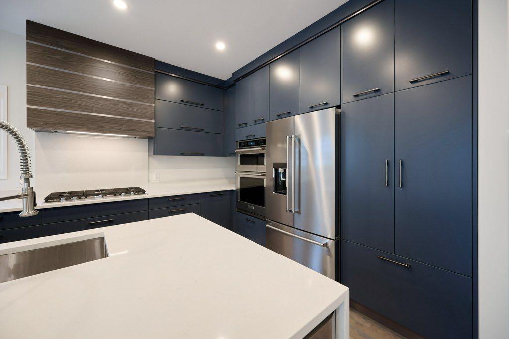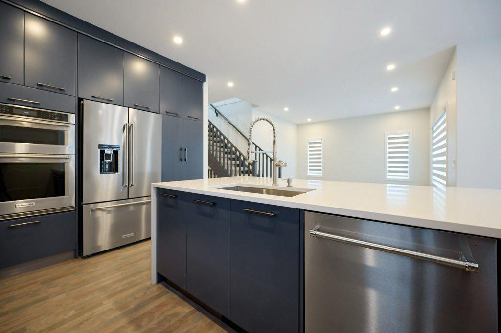 • chef-inspired kitchen with exquisite cabinetry, peninsula with quartz top, custom built-in storage, tech shelf, sunny breakfast nook and high-end stainless appliances