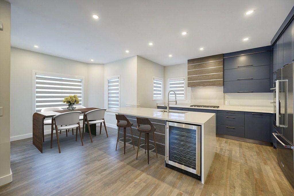 • lutron smart lighting inside/outside, custom window blinds, and striking wood feature wall.