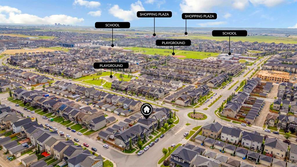 \"Semi-Detached located on the same street as Prairie Sky School - OVER 1900 SQ. FT. OF FINISHED SPACE | 4 Beds | 3.5 Baths | FULLY FINISHED BASEMENT | DETACHED DOUBLE GARAGE | Front Porch and much more\". Welcome to 21 Skyview Ranch Manor NE! This beautifully maintained HOME HAS BEEN VERY WELL CARED FOR BY ITS ORIGINAL OWNER SINCE 2012 and is now move-in ready for its next chapter. Perfectly located in the heart of Skyview Ranch, this property is just a 7-MINUTE WALK TO THE PRAIRIE SKY SCHOOL AND ONLY 3 MINUTES TO THE NEAREST PARK, making it an ideal choice for growing families. RECENT IMPROVEMENTS INCLUDE UPDATES IN THE EXTERIOR with new roof, siding and garage door replaced just in July 2025 (Warranty Certificate will be provided). Step inside to discover a bright, inviting, and functional floor plan. The main level offers an open concept layout with a spacious living area filled with natural light and a dining area that flows seamlessly to the backyard—perfect for everyday living and entertaining. The FUNCTIONAL L-SHAPED KITCHEN IS PRIVATELY TUCKED AWAY IN THE CORNER, ideal for daily cooking. The bright, inviting kitchen features a full-sized window, QUARTZ COUNTERTOPS, AND FULL CEILING-HEIGHT CABINETS. Upstairs you will find 3 generously sized bedrooms, including a spacious primary featuring an ENSUITE BATHROOM WITH A STANDING SHOWER. The FULLY FINISHED BASEMENT EXPANDS THE LIVING SPACE with a large recreation room, bedroom, and full bathroom. Outside, enjoy a private backyard space for summer BBQs or playtime, along with REAR PARKING IN A DETACHED DOUBLE GARAGE and rear lane access. This property boasts exceptional city-wide connectivity, thanks to its convenient access to Country Hills Blvd, 128 Ave, and Stoney Trail. With schools, parks, shopping, transit, and everyday amenities all nearby, this is a fantastic opportunity to own a well-kept family home in a highly desirable community. Check the 3D tour and book your showing today. OPEN HOUSE: SEP 27 & 28TH, 1.00-3.00 P.M.