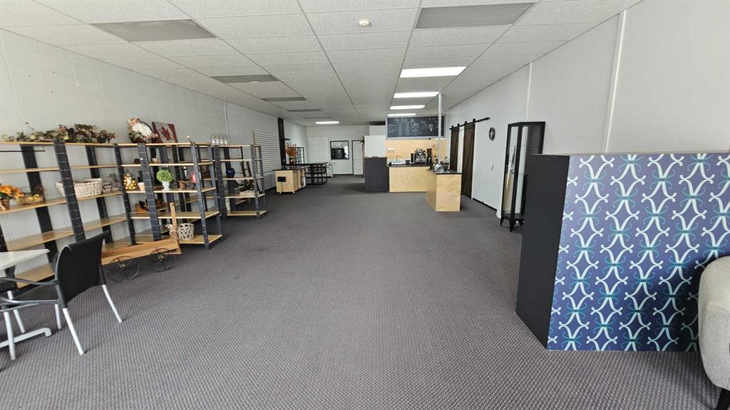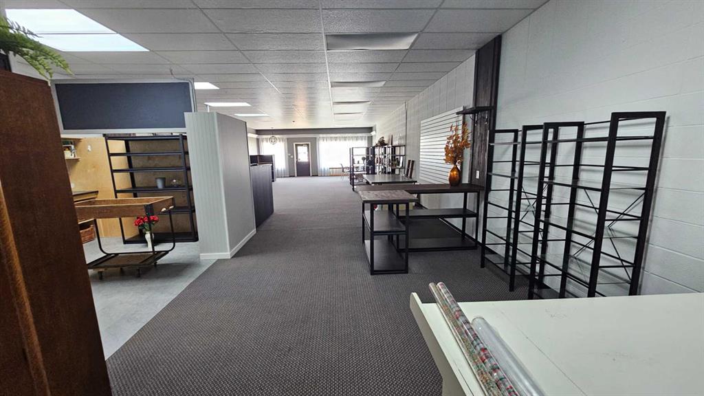 Established business since 1978, this business and building is for SALE in Coronation on Royal Avenue. It was running as a Benjamin Moore Paint Sales, Specialty coffee house, Flower, shop, and Gift ware. There are four office spaces for rent with private access. The building is 4723 sq ft , built in 1989 with cinder block walls, finished inside, has a pitched metal roof, with negotiable shelving and equipment. Assessment on building is $262770. Only one side of building in pictures due to temporary tenant.